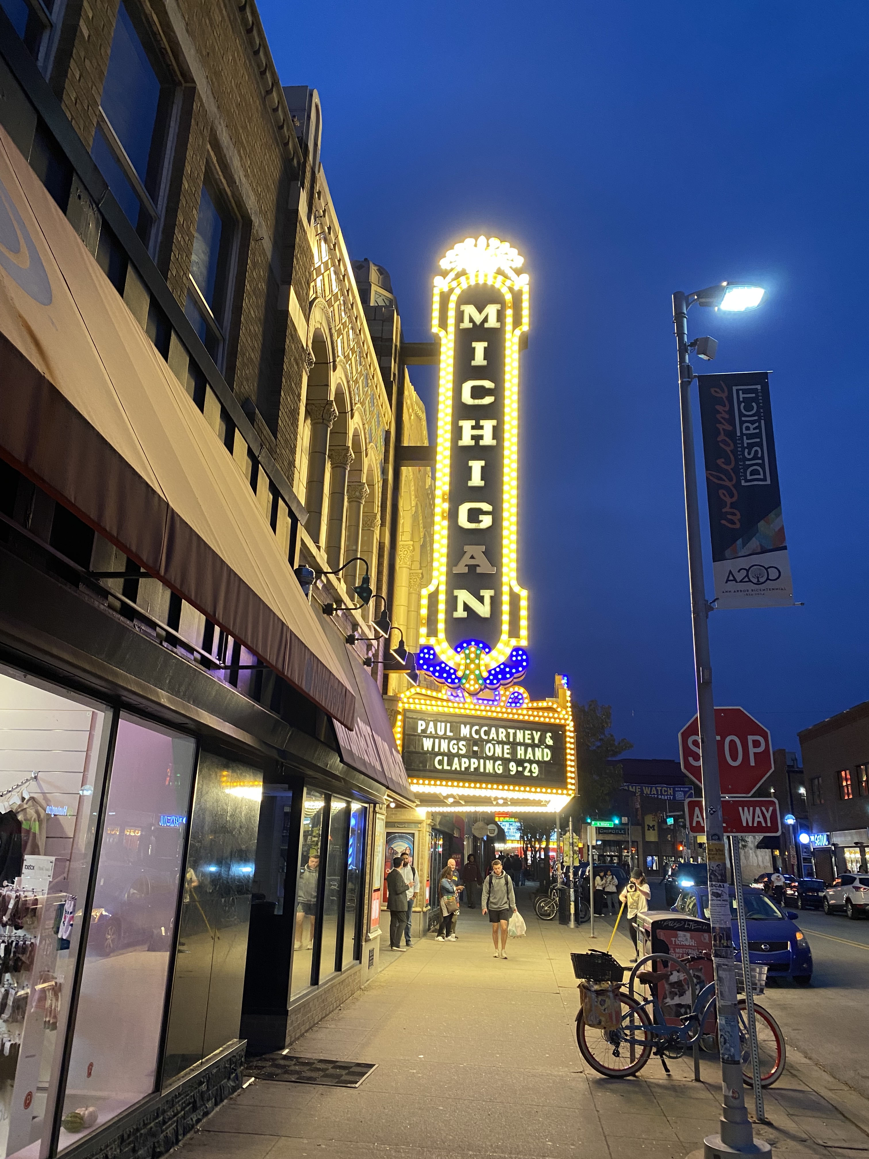 So, Nick and Nora, left after dinner and drove to Ann Arbor to go to the Michigan Theater, and our date night was getting more interesting and fun.  The Michigan Theater was designed by Detroit architect, Maurice Finkel, originally designed to show silent movies in 1928.  It has a fully operational stage, orchestra pit and a Barton Theater Pipe organ and can comfortably seat seventeen-hundred ticket holders.  It also makes me smile, as it has a sweeping staircase for seating in the balcony, shades of my youth.  The organ was built in 1927 and is almost played daily, preceding most events that are held there.  The theater was restored in 1979 and has been named an Outstanding Historic Theater in North America by the League of Historic Theaters.  And they have a movie marquee like I remember, and it was a pleasure watching one of the employees changing the wording, one letter at a time.  The presentation of films is very eclectic, from silents, to nights of classic cartoons, classic films, and even modern films and documentaries.  The theater also has a small selection of drinks, including wines, and for some of you who can appreciate it, a real movie-house popcorn maker, as compared to the pre-popped popcorn that is heated up, that is found in most cineplexes these days.