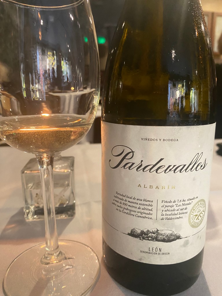 We basically all arrived at the same parking structure at the same time and walked around a bit, and then went to the restaurants. The ladies started the meal with Butternut Squash Soup with a fried carrot, coconut milk, apple, red curry, and ginger. I went with Smoked Salmon Rillettes with shallot, dill, aioli, trout roe, and crostini. We started with Vinedos y Bodega Pardevalles Estate Albarin Blanco Leon 2023. Leon is an historical wine producing area at the intersection of two major pilgrim routes to Santiago. The district Leon, until 2019 was known as Tierra de Leon and is a recently new DO status; though viticulture has been recorded there, going back to the Tenth Century. The area did suffer from phylloxera in the late 1800s, and slowly recovered, but during the Franco dictatorship, the area was concerned with quantity over quality. Pardevalles Estate was founded in 1949 by Rafael Alonso, who came from a long heritage of grape farmers and winemakers, and his children and his grandchildren are now operating the estate. The estate has thirty-eight-hectares planted to Prieto Picudo and Albarin Blanco on quaternary soils with a large number of rounded stones, which absorb the heat of the day, and keeping the soil warm during the nightfall. The wines are stored in a subterranean cave that has been used for the area for the last three hundred years, and the estate has 125 barrels there made of French and American Oak. This wine is pure Albarin Blanco, mechanically harvested. It undergoes maceration for two days, and then resting another two days, before Initial Fermentation in Stainless Steel tanks. The straw-yellow wine offers notes of white stone fruits, citrus, white florals, and herbs. On the palate a well-balance wine with good acidity and tones of jammy tropical fruits and florals; ending with a short crisp finish of terroir.