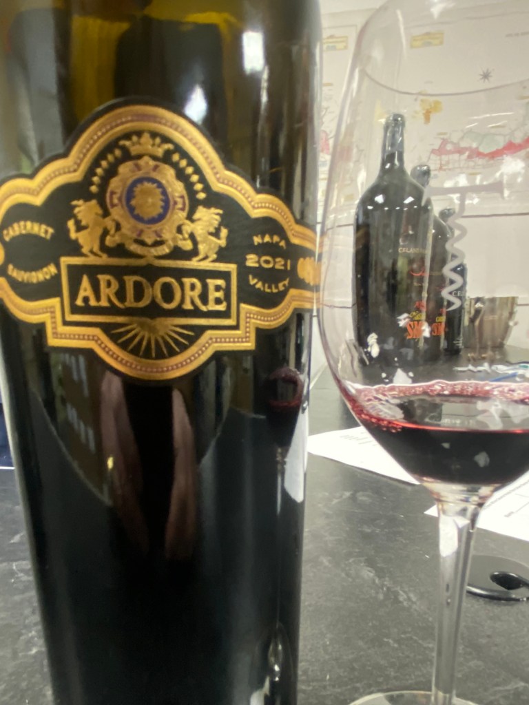 We then finished the tasting with the flagship wine, the Celani Family Winery “Ardore” Cabernet Sauvignon Napa Valley 2021. The “Ardore” also evokes Tom Celani’s passion for a great cigar, as the label reminds one immediately of a cigar wrapper. The wine is made from a careful selection of ten barrels of Cabernet Sauvignon from the most exceptional vineyard sites in the Coombsville AVA. The wine is aged for twenty-two months in French Oak of which eighty-five percent is new, and the wine is never fined, nor filtered. This deep garnet wine offered great notes of blackberries, black currants, Crème de cassis, tea, and followed by tobacco, chocolate, and minerals. On the palate, powerful tones of rich concentrated fruit and velvety tannins with an ending that had a very long count of lush fruit and terroir.