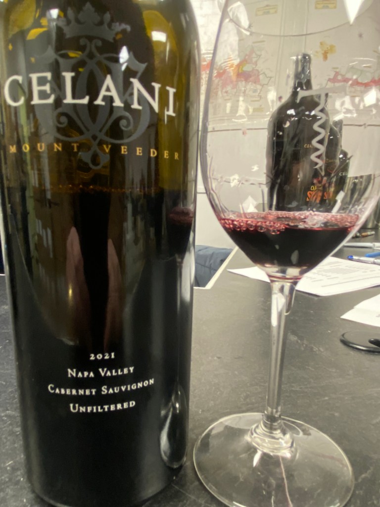 We then had for the first time the Celani Family Winery Cabernet Sauvignon Mount Veeder 2021, and this was only the second vintage for this wine; and The Fine Wine Source is the only location outside of the winery to have this wine on the shelves. The fruit is from the Lynne’s Vineyard, and the Napa side of Mount Veeder is known for its rugged East facing mountain terrain and the fruit gets concentrated. This pure Cabernet Sauvignon wine was aged for twenty months in French Oak, of which seventy-five percent was new. The dark garnet wine immediately offered notes red and purple fruits, with black cherry, blackberry, and plums and then secondary notes of currants, raspberry, tea, chocolate, violets and crushed rock terroir. On the palate the tones of cherry, and raspberries led the way, and already lushly blending with velvety tannins, well-balanced with a nice long finish of fruit and terroir.