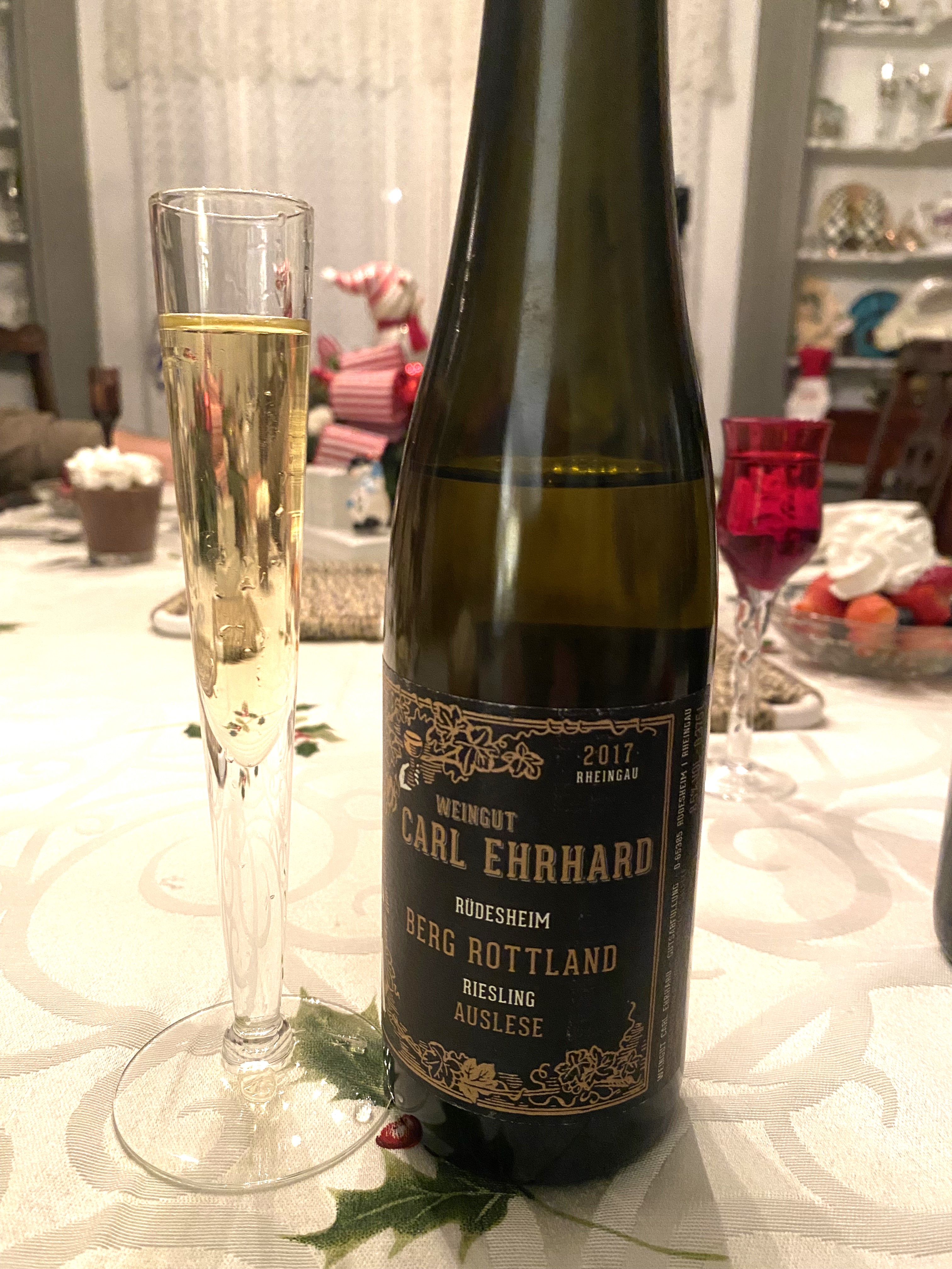 For dessert my Bride had stopped at our local Italian market and went to their bakery to buy an assortment of cakes, cookies and tarts. I knew that the husband enjoyed Riesling wines, as that is what we have given him other bottles as gifts in the past. So, we opened a bottle of Weingut Carl Ehrhard Rüdesheim Berg Rottland Riesling Auslese 2017 from the Rheingau. The Rheingau was first settled by Celts, followed by the Romans in the First Century. Rüdesheim is a town on the northern banks of the Rhine River and there are seven vineyards rated by the VDP as Grosse Lage (First Growths) and the best are west of the town with on the steep slopes with southern exposure and Berg Rottland is one of them. Here is one of the steepest slopes and the soil is slate, quartzite, gravel, and scattered loess. Weingut Carl Ehrhard is an historic family estate and winery founded in 1815 and is now organic and biodynamic. All fruit is hand-harvested, Initial Fermentation occurs spontaneously from indigenous yeasts in large neutral oak barrels. The juice remains in the barrels on their lees for over a year, and they like to release the wine seventeen months after harvest with no fining or filtering. The wine had a nice golden color and offered notes of ripe peaches and apricots, white florals, and honey. On the palate a rich full-bodied wine that had tones of ripe fruit, a touch of citrus with balanced acidity and a long finish of honey and terroir.