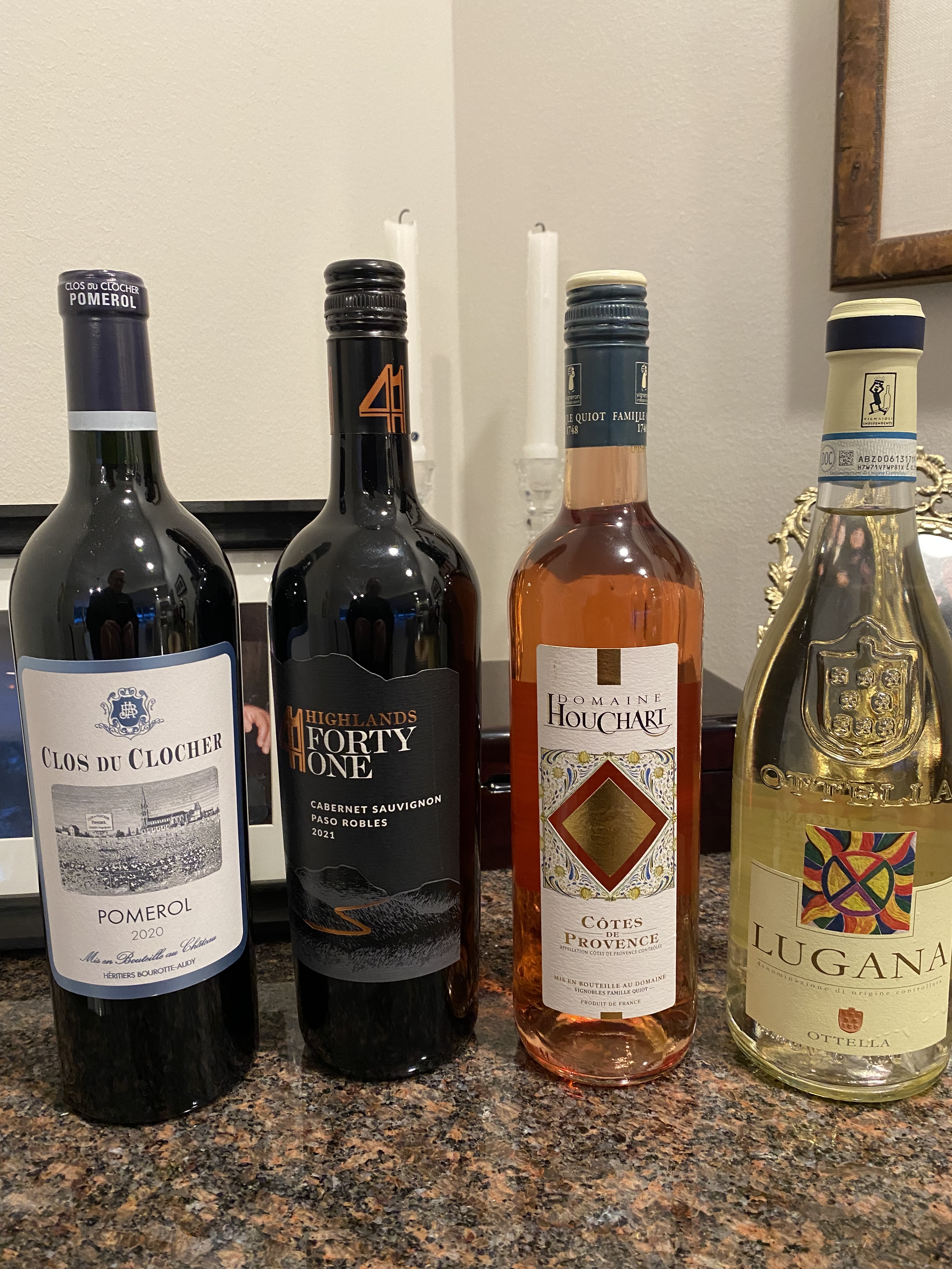 We were asked to bring my Bride’s now famous and requested Caesar Salad, and a half tray of paklavah (the Armenian pronunciation), as none of us eat as much sweets as we used to. I also brought four bottles of wine to add for the festivities. The first one is one of our go-to wines at our house Otella Lugano DOC 2021 from Azienda Agricola Otella. The second wine was Domaine Houchart Rosé Cotes de Provence 2023 from Vignobles Famille Quiot. The third wine was Close du Clocher Pomerol 2020 from Heritiers Bourotte-Audy. While the fourth bottle was Highlands 41 Cabernet Sauvignon Paso Robles 2021. I figured that group of four would accommodate any of the wine drinkers attending.