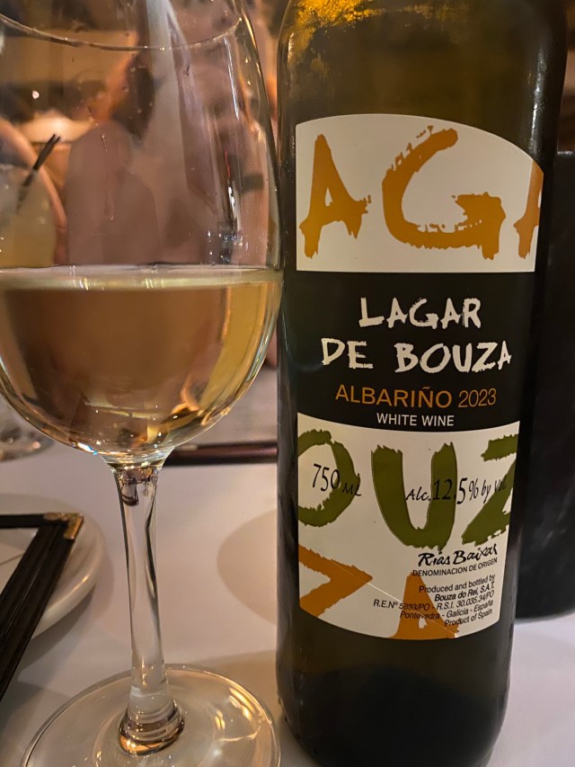 The 94’th Aero Squadron was very accommodating, as I made the original plans in Detroit and then it was modified twice while we were in Miami. The Squadron goes back to World War One and was affiliated with the Lafayette Escadrille. Being from Detroit, I don’t understand this ersatz cab companies, but I was out voted, the Uber driver had no idea, where we were going, but I had to address on my phone, to make sure that we were going to the right place, and the restaurant was right across the street from some of the fields of the airport, and I might add the restaurant was a considerable size, and later I could observe that it was well operated. Even with a good crowd, the waiter was able to break the group down to couples, but we did find out later that he charged us a group tip rate, the food was good, he was mediocre. My Bride had Mahi-Mahi and topped with Shrimp Scampi on a bed of Jasmine Rice, while I had the Mediterranean Branzino baked in olive oil and lemon juice on a bed of Jasmine Rice. I found an interesting bottle of Bouza do Rei Lagar de Bouza Albarino Rias Baixas 2023. The bodega began in the Twenties and today they now have one hundred hectares. This wine is only made from vines at least twenty-years of age, and they use pneumatic presses, cold filtration and aging of three weeks in Stainless-Steel tanks for maximum freshness. A soft yellow wine that offers notes of lemons, limes and ginger. On the palate tones of green apple, yellow plums and honeysuckle with bright acidity and a short finish of lemon zest.