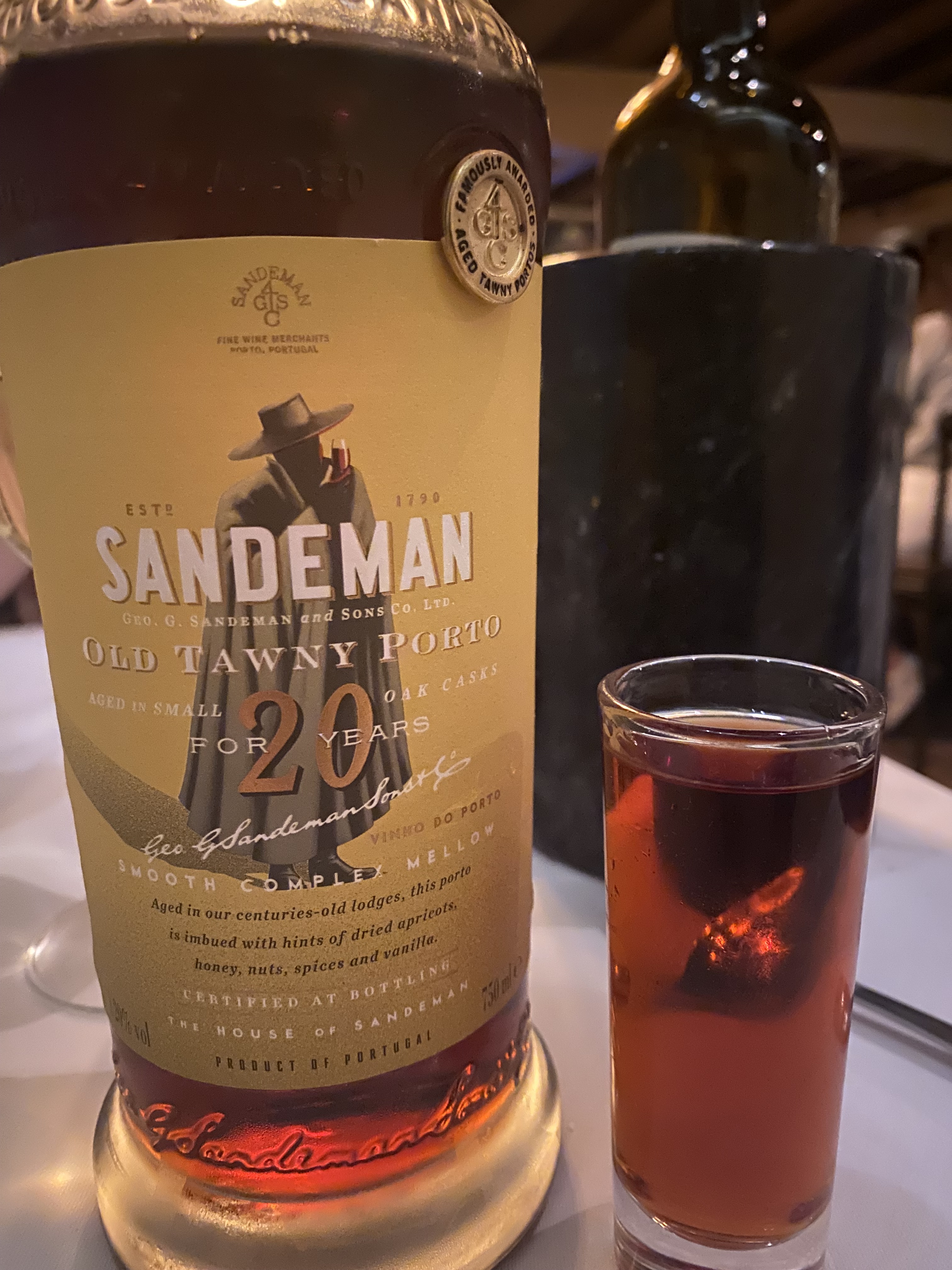 I could have enjoyed wandering around the restaurant admiring the different military and aeronautical décor. I guess, I get into stuff like that, while everyone was deciding on desserts, I decided on a glass of Sandeman Twenty Year Old Tawny Porto NV. The house was founded in 1790 by George Sandeman who originally sold Port and Sherry in London, until moving to Vila Nove de Gaia in Porto in 1811, and is now managed by the seventh-generation family director. They still have the original location and their vineyards are in the Douro Valley, and in the 19th century they also acquired a Sherry bodegas in Spain. Recently I have been enjoying Port Wines more and more, and have discussed the truly unknown varieties that have evolved over the centuries, not to mention the unique way that the wines are aged in wooden casks which concentrate the fruits and flavors. The deep ruby red wine offered notes of dried apricots, honey, nuts, vanilla and finishing with a nice long count of fruits and nuts.