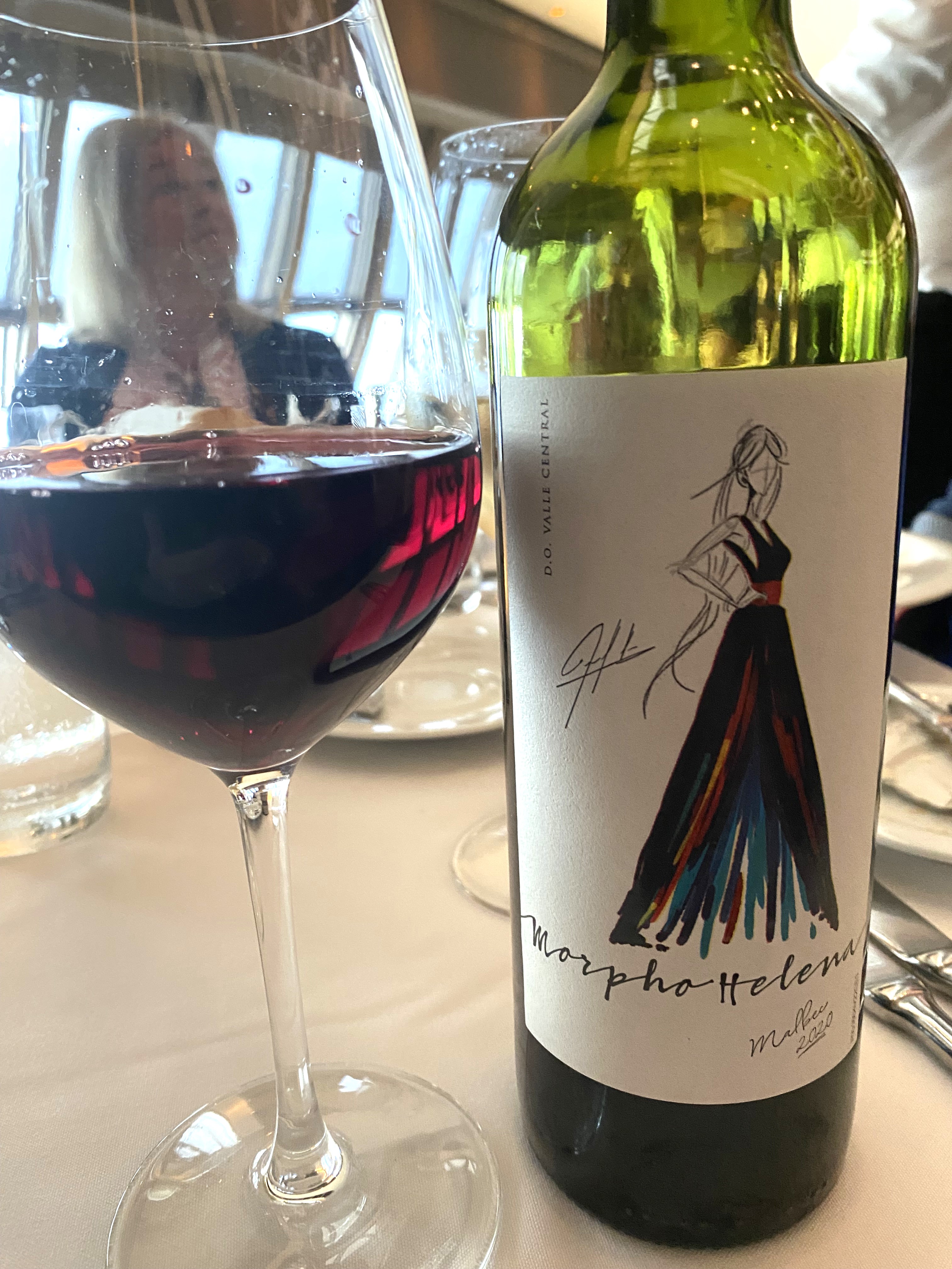 After returning to the ship later, we met up with some others as it was our only other night of non-premium dining. They bundled four nights as a special, and then you could eat at some of the casual dining spots, or you could go to the better locations and pay an additional premium. We met at one of the two locations across from each other, that we went to every morning for breakfast, and it was always a lovely breakfast and the perfect way to start the day. We started our dinner off with Shrimp Cocktails in a classical interpretation and we both had New York Strip Steaks with assorted sides. We had Bodegas y Vinedos de Aguirre Morpho Helena Malbec DO Valle Central Chile 2020. I could find basically nothing about this winery, other than people mentioning that they encountered the wines on cruise ship. The Central Valley (El Valle Central) of Chile is one of the largest wine regions in Chile. The region is noted for Cabernet Sauvignon, Merlot, Syrah, Malbec, Chardonnay and Sauvignon Blanc, as well as many Bordeaux style blends. Malbec was planted in this region, before it was planted in Argentina. The wine is a dark ruby and offered notes of blackberry, black cherry, sous bois and tobacco. On the palate this medium-bodied wine had tones of black cherry, currants and herbs with high acidity, strong tannins and a medium finish of terroir.