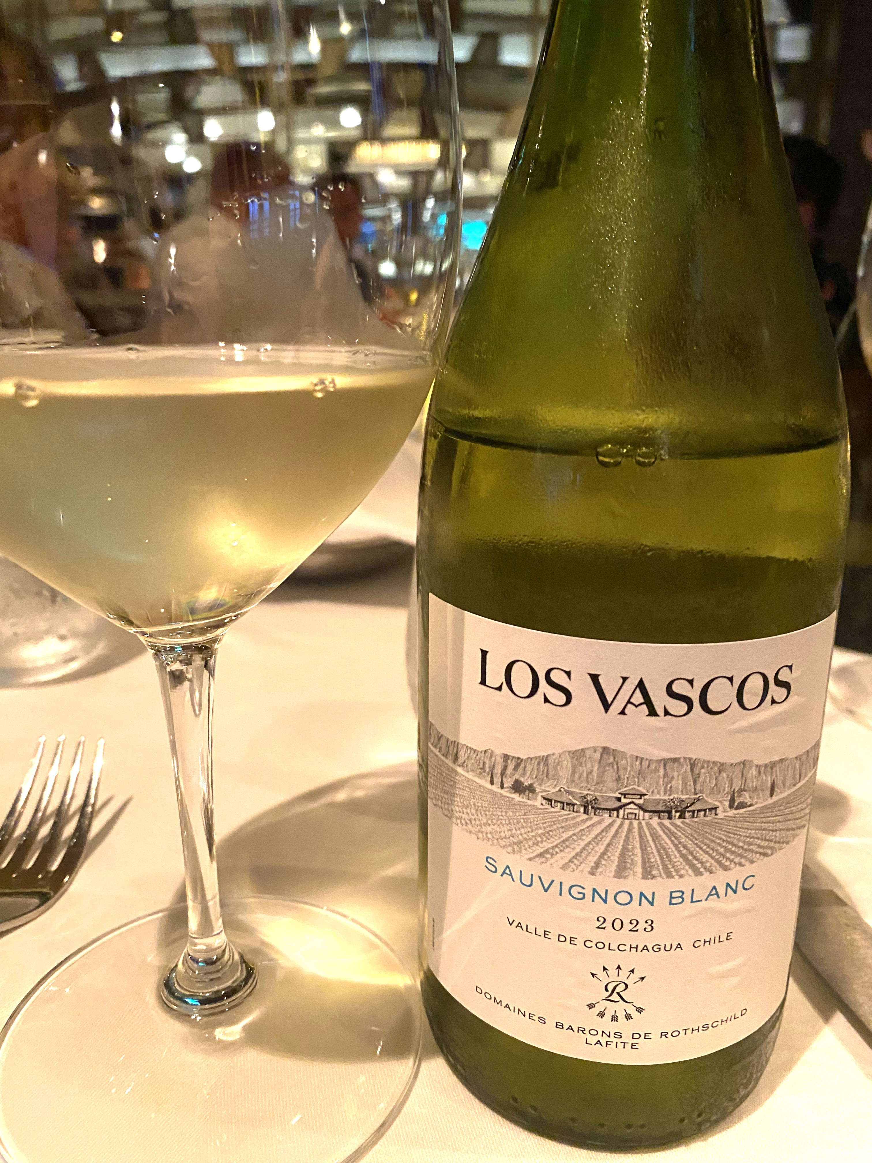 My Bride started off with Crab Cakes with Radish Salad and a Lemon-Mustard crème sauce. I went with the Lobster Bisque with Roasted Lobster and Sherry. We started with Los Vascos Sauvignon Blanc Valle de Colchagua, Chile 2023. Vina Los Vascos has been owned and operated by Domaines de Rothschild (Lafite) since 1988 in the Colchagua Valley. The estate is six hundred-forty hectares on volcanic soil and clay. The vines on the estate are from 15-70 years in age. The wine is pure Sauvignon Blanc and the fruit is manually harvested, destemmed, and undergoes a period of maceration for about twelve hours, then the must is drain pressing begins. After cold decanting, the wine is kept in cold storage for two weeks, the must is then inoculated and fermented in Stainless-Steel tanks. Until recently this wine came from fruit in the Casablanca region, but now from Colchagua and better appreciation and notes commercially. A soft greenish-golden color wine that offered notes of citrus, green apples and herbs, followed by additional notes of exotic fruits. On the palate a good medium-bodied wine that offered green apples, herbs and a nice medium count finish of fruit and flint.