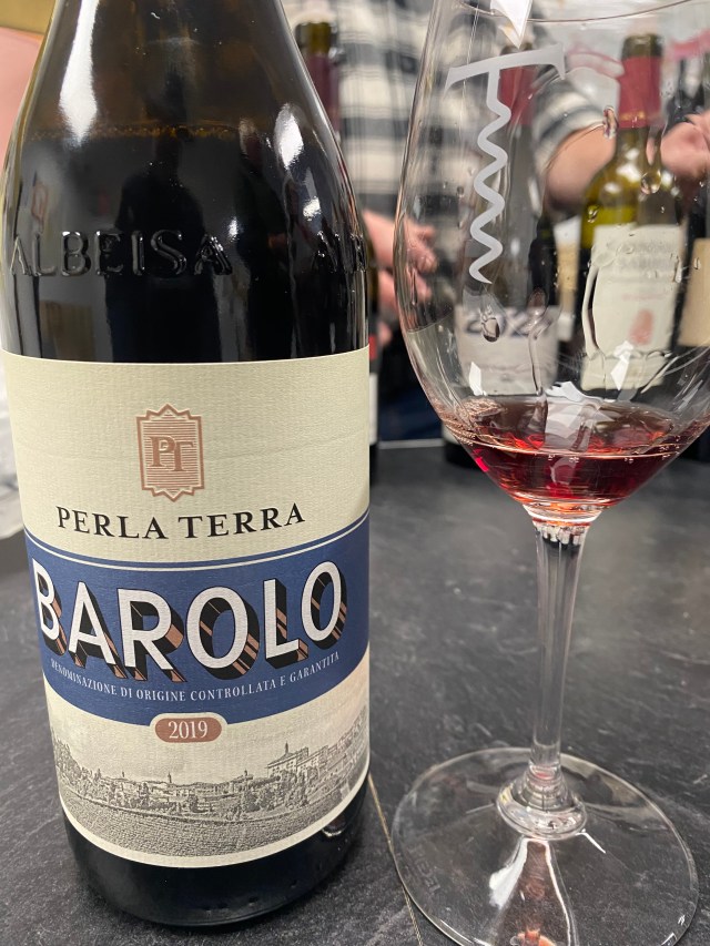 The third wine that we tasted was Perla Terra Barolo DOCG Piedmont 2019 from the Dalla Terra group. Perla Terra is a partnership of several small growers primarily in the communes of La Morra, Novella, Monforte d’Alba, Grinzane Cavour and Verduno. The wine is vinified and bottled for Dalla Terra using traditional methods at a local winery in the Barolo region. The cru vineyard selections are vinified separately, and this “negociant” style blend is selected by the co-owners, Brian Larky and Scott Ades. The wine is from “sustainable” vineyards with an average age of twenty-years for the vines. The Nebbiolo fruit is de-stemmed and crushed and produced according to the regulations of Barolo DOCG. A total aging period of thirty-six months, with a minimum of eighteen months in assorted size barrels, with twenty-seven percent in new French Oak and six months in the bottles, before distribution. A nice ruby color wine that offered notes of dark fruit, violets, roses and sous-bois, but not the classic “tar and roses” of Barolo. On the palate, this medium bodied wine offered tones of cherry and blackberry, mellow tannins and a lean medium-count finish of fruit, pecans and a trace of bitters.