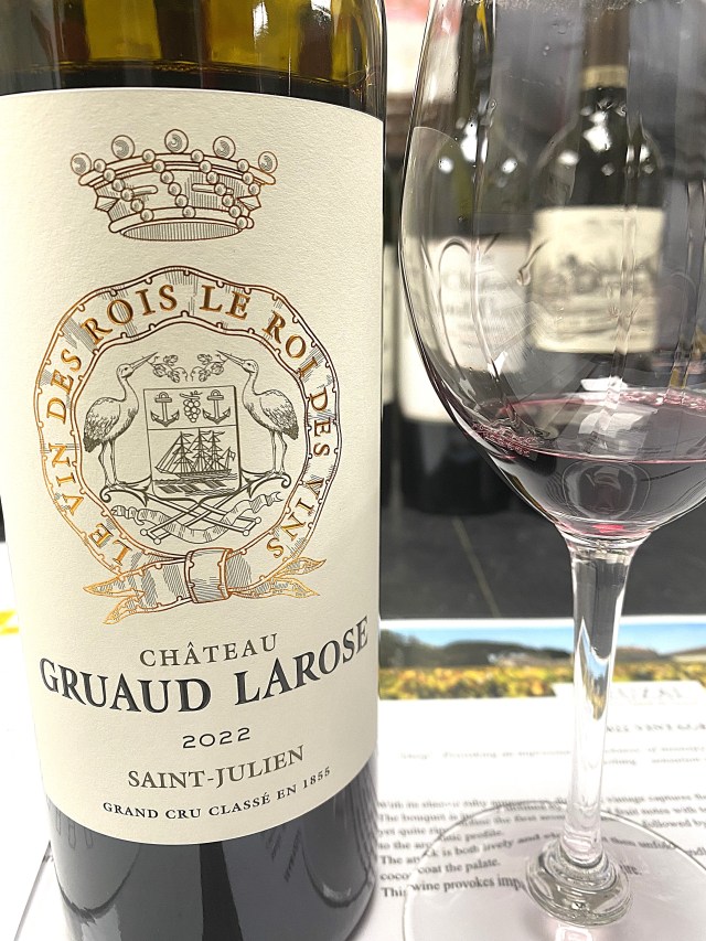 The last wine on the printed list was for Chateau Gruaud Larose Saint-Julien 2022 and is a Second Growth from the 1855 Classification. Saint-Julian commune has no First Growth wines but has eleven classed growths and is located between Pauillac and Margaux. Chateau Gruaud Larose was formed from three merged estates in1757 by Joseph Gruaud, who left the property to a Monsieur de Larose in 1771. From 1865, the property was split into separate estates, as a result of inheritance, but reunited in 1935. It was bought by the current owners, the Merlaut family, in 1997; and their Groupe Taillan owns numerous other Bordeaux properties. The estate is eighty-two hectares and the vines are planted on a soil that is a mix of gravel, pebbles, sand, clay and humus over a subsoil of assorted clays, sand and pebbles; and the vines average forty-six years of age. The estate is 100% managed according to the principles of Organic and Biodynamic Agriculture; they even maintain a herd of three-hundred sheep to keep the grass under control in the winter, as well as a source of compost. The fruit is hand harvested and undergoes a double selection process while still in the field and the tanks are initially by plot and varietal, of which fifty percent is oak, and fifty percent is concrete for Initial Fermentation and maceration; the wine is then aged for eighteen months in French Oak. The wine is a blend of eighty-three percent Cabernet Sauvignon, fourteen percent Merlot and three percent Cabernet Franc. The black-purple colored wine offered notes of cassis, black fruits, licorice and cedar. On the palate this full-bodied wine displayed tones of cassis, black cherry and other dark fruits, well balanced and featuring tight tannins and a long-count finish of fruit and graphite (terroir). This wine probably needs ten to twenty years in the cellar to truly open.