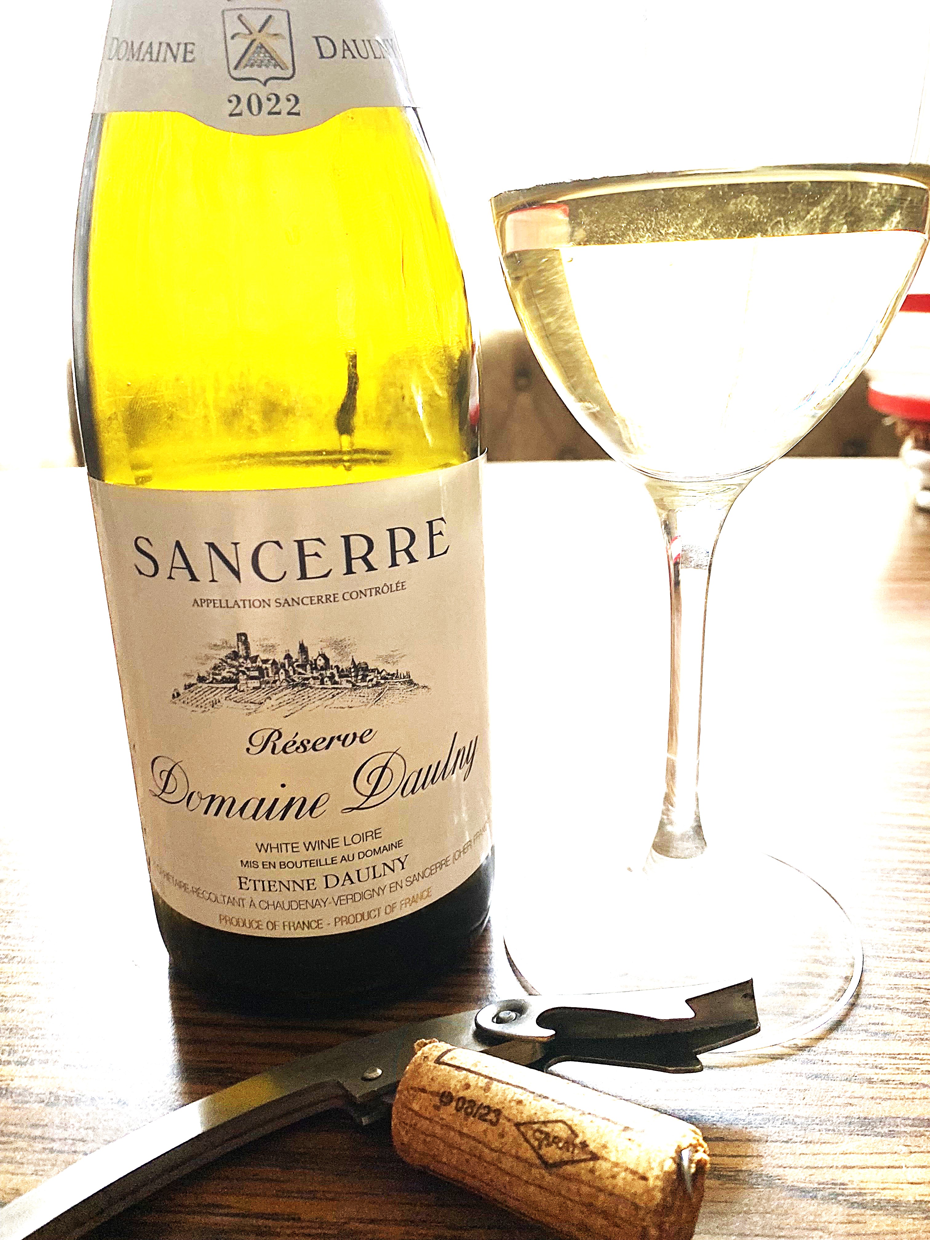 We started off in the living room having appetizers, as I am still old-fashioned and like using our living room for family and friends. She placed some Hummus with garlic, flat bread, crackers and some cheeses. One of the cheeses, was a big hit, but the label from the shop didn’t reveal much, other than it was cow’s milk, had a hard red rind and it was a “lemon cheese” and no there wasn’t any leftover for me to indulge in, the next day. We served Domaine Daulny Reserve Sancerre 2022 from the Loire. Etienne Daulny owns fifteen hectares of vines divided into about fifty different plots within Sancerre and none of these wines see Malolactic fermentation. Most of the aging occurs in Stainless Steel, but about twenty percent is aged in well used six-hundred-liter “puncheons” and then the wines are blended at the end. A nice straw-colored wine that had notes of grapefruit, lemon and herbs. On the palate, tones of a classic Sancerre, a bit racy, well balanced with a nice long crisp finish with terroir.