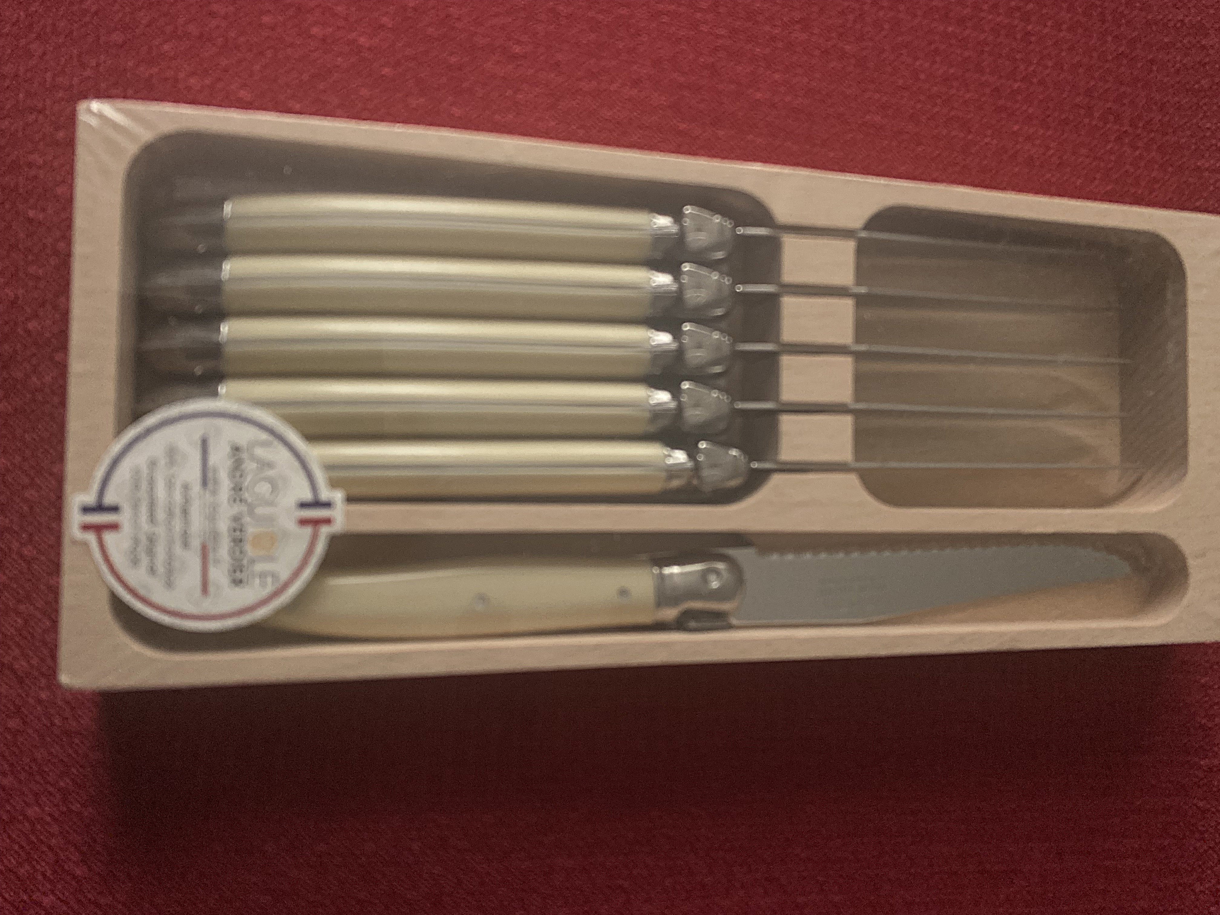 For years, I have written about the large family gatherings we would have for holidays and birthdays. It gradually became that way, as my Bride, before we met, was the daughter that was always cooking with her mother for events, and my Bride was the first of the five daughters that bought a house, and she made sure that it was big enough to handle the crowds. This went on for years, but now, the families are starting to splinter, because our nieces and nephews are getting married and the families are having smaller dinners with just their immediate family. We ended up having five for dinner, but my Bride still persevered with traditions and she even got me an Easter basket, candies, cookies and all the stuff that disappeared from the house during Lent. Though she really spoiled me and bought me a set of Laguiole Steak Knives, the ones with a bumblebee at the tang. I have admired these from the first time we used them at Casanova’s in Carmel-by-the-Sea, and the following year, when we went there, they were using a different set of knives, because the knives had been stolen by patrons, how sad. Yes, my Bride does spoil me.
