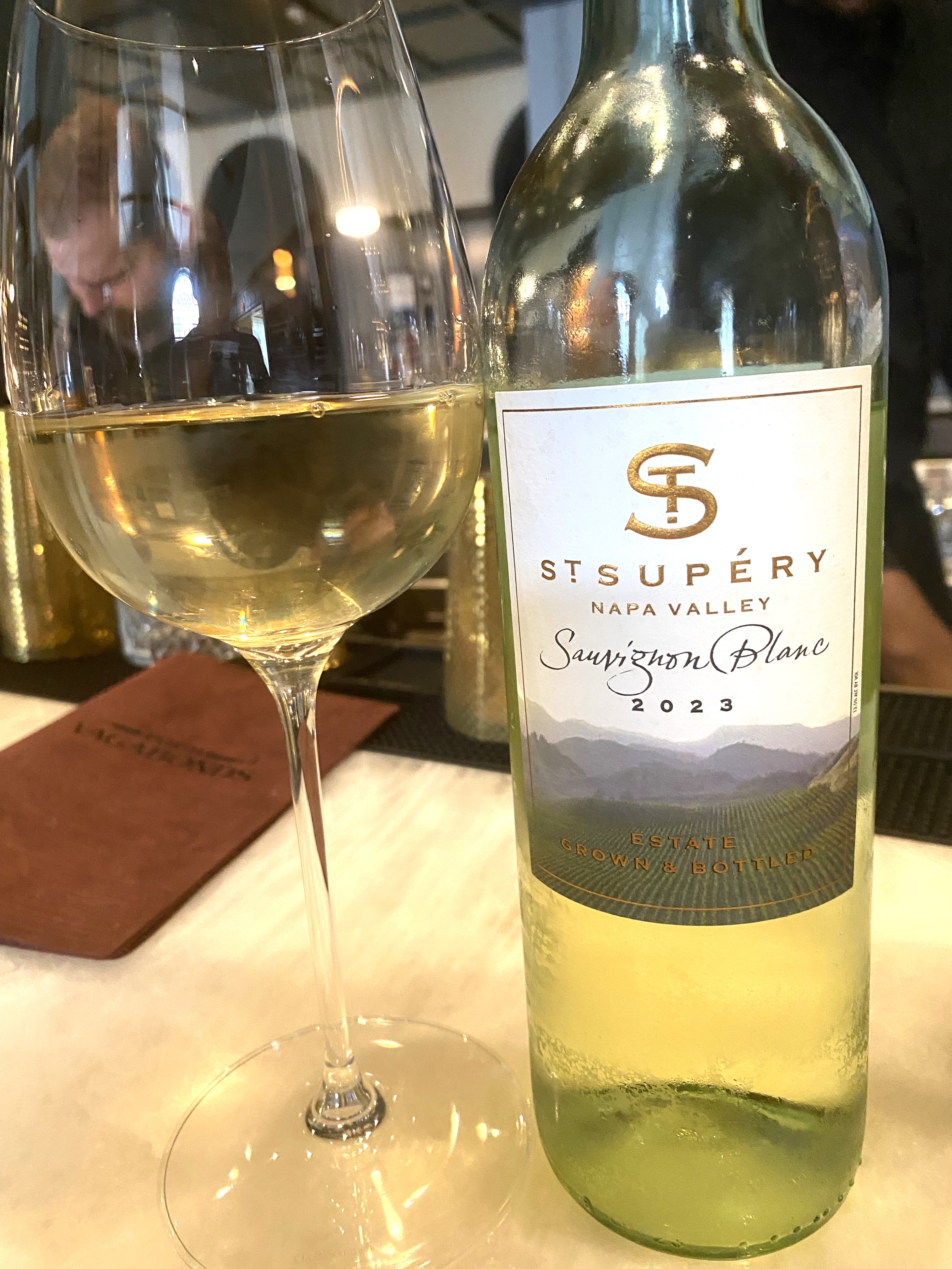 The other white wine that I selected, I knew would bring a smile to her face as she enjoyed a wine tasting at the winery, and we really don’t encounter the wines that often. We had the St. Supery Estate Vineyards and Winery Sauvignon Blanc Napa Valley 2023, which is one of their estate wines. Robert Skalli arrived in Napa Valley from Corsica, when his grandparents founded Terra Vecchi. In 1982, he purchased the Dollarhide estate, a 1500 acre cattle ranch in Napa Valley, and he also purchased 56 acres in Rutherford where the winery is built, and the first vintage was in 1989. All the wines produced are from their own estate vineyards and are sustainably farmed. The Skalli family sold their Napa Valley holdings to fashion giant Chanel in 2015. The fruit for this wine was harvested over a month, to take advantage of the mild weather, with seventy-two percent coming from the Dollarhide Estate Vineyard and twenty-eight percent from the Rutherford Estate Vineyard. Fermentation and aging were done at cool temperatures in Stainless-Steel tanks to maintain the crispness and delicate acidity. A soft golden-yellow wine that offered notes of grapefruit, lime zest, gooseberry and fennel. On the palate this medium-bodied wine displayed crisp tones of grapefruit, lime, lemon, and a touch of anise with refreshing acidity and ending with a nice medium to long count finish of fruit, capers and a saline vibrancy; for a young wine it showed great complexity.