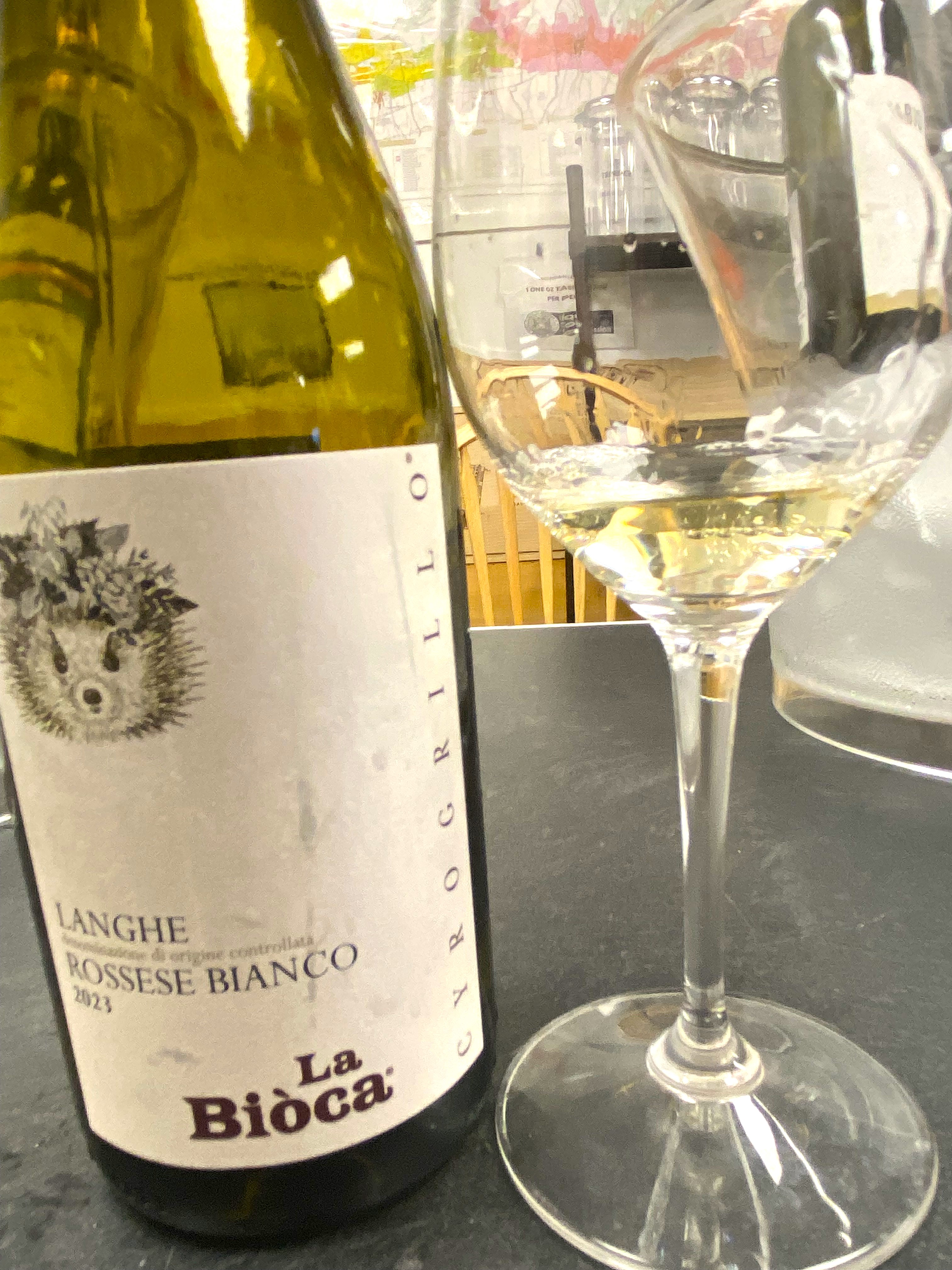 We then tried La Bioca “Cyrogrillo” Rossese Bianco Langhe DOC 2023. La Bioca is a small winery in the Langhe near Serralunga d’Alba. The winery has eight hectares of vineyards located in Monforte d’Alba, Novello, La Morra and Barbaresco. Their first vintage was in 2012. Rossese is a mildly aromatic red grape variety found in Liguria, and along the Riviera in southern France to the Franco-Italian border. It is rather rare to be seen on its own, and is often blended with Sangiovese, though a few wineries are staunch supporters of this grape. There is a mutation of this grape known as Rossese Bianco, the most famous being Rossese di Dolceacqua. This wine is a blend of eighty-five percent Rossese Bianco and fifteen percent Manzoni Bianco. The fruit is manually harvested, destemmed, and softly pressed without maceration. The wine is fermented in temperature-controlled Stainless-Steel tanks, and the two juices are vinified separately on the lees for about five months, and then the two wines are blended about two months prior to bottling. This straw-yellow wine offered notes of lemon, chamomile, white florals, herbs, cut grass and minerals. On the palate this light-bodied wine displayed tones of lemon-lime citrus, white pepper, traces of vanilla, good acidity with an oily-like texture and ending with a medium-count finish citrus and terroir.
