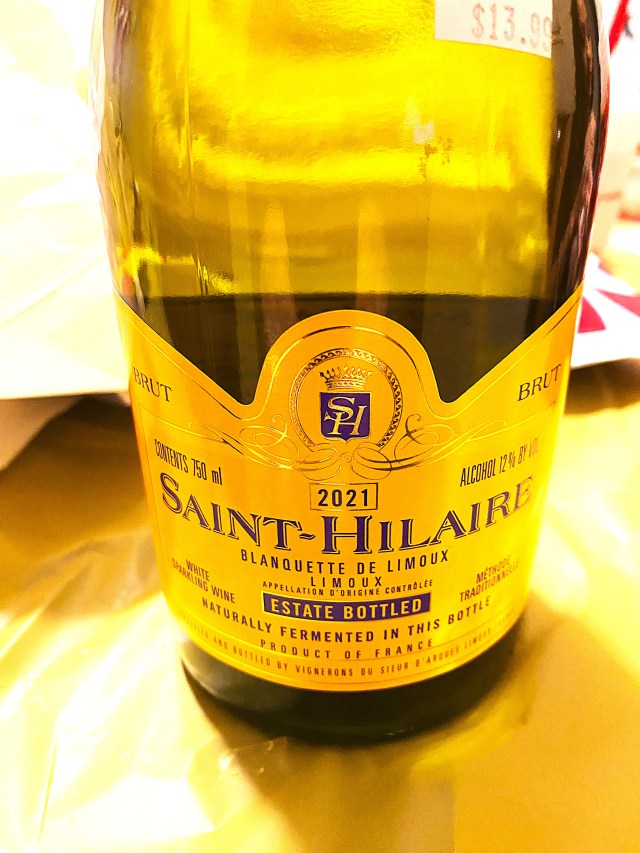 While we were shopping, I also grabbed a bottle of Sieur d’Arques Saint-Hilaire Blanquette de Limoux Methode Traditionelle 2021. Limoux is in the Languedoc wine region and wine was introduced to the area by the Greeks in the 5th Century BC, but it was in 1531 when the Benedictine monks from the Abbey of Saint Hilaire, a town near Limoux allegedly produced the first sparkling wine. The claim of the sparkling wine discovery has proponents in Champagne that argue who was first and that is not for me to decide (thank God). The Lord of the region at the time, the Sieur d’Arques was a huge fan of this wine and the local wine growers decided to rename their winery after him. The AOC Blanquette de Limoux is the first AOC in the Languedoc and one of the first appellations in France. The association of wine growers created the Société des Producteurs de Blanquette de Limoux in 1946 and in the 1990’s changed the name to Sieur d’Arques. The Traditional Method, which has a second fermentation in the bottle is used for the Blanquette de Limoux wines. Blanquette is a local name for the Mauzac grape variety, and to confuse matters three other local varieties are also known as Blanquette and they have nothing to do with this famed wine. Originally by regulation this wine was totally Mauzac, but lately the regulation has been softened to appeal to new generations of wine drinkers, and the wine must be ninety percent Mauzac and the balance can be Chardonnay and/or Chenin Blanc. The grape is known for its high acidity and low alcohol and delivers flavors of honey and green apples. We left before this bottle was opened, as there were more people coming to celebrate.