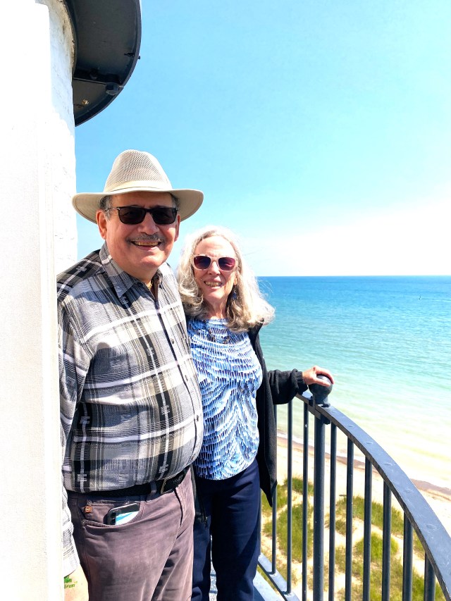 After breakfast we went to the Blue Water Sandfest, which was the purpose of the trip. This was the Eleventh Sandfest and it was on the grounds of the Fort Gration Lighthouse, which is a bonus to my Bride, as she and most Michiganders love lighthouses, since there are so many in the state. We were watching as the works of art were being created, one was going to depict the original Batmobile from television fame, and another was a whimsical take “Hare B&B.” There was a large pavilion for live music, plus food and beverage service around the sand art. We also decided to scale the Fort Gratiot Lighthouse. The original lighthouse was built in 1814 and collapsed in 1828. The replacement was built in 1825 and is the oldest in Michigan and the second on the Great Lakes (which is Presque Light/Erie Land Lighthouse in Erie, Pennsylvania). There are ninety-four iron steps in a circular staircase to get to the top of the lighthouse, and you better not be in a hurry. Also the handrail, which is a must, must have been designed for Quasimodo, as it was so positioned at a much lower stance to today’s standards. One could walk the entire circumference of the lighthouse at the peak outside, so there were beautiful vistas.
