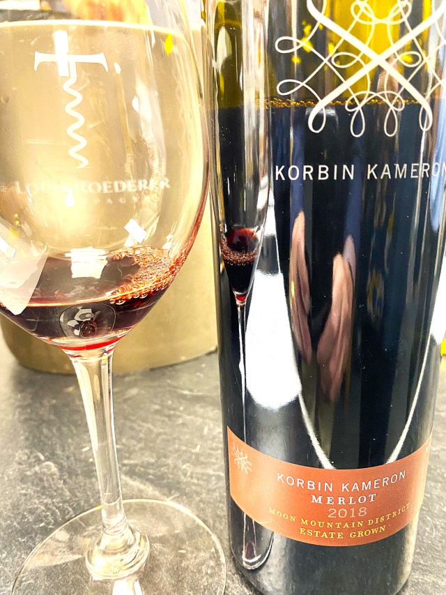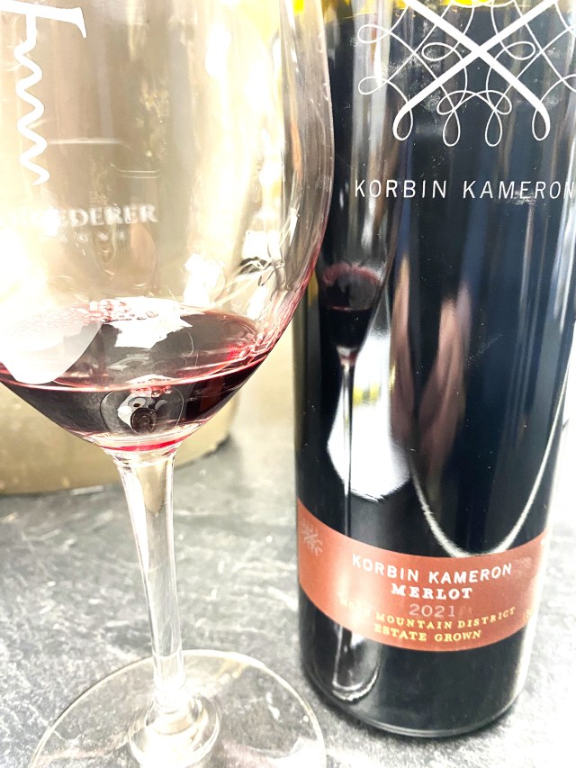 There were three Merlot wines being poured and the first was from their Library Collection of Moonridge Vineyards and was their Korbin Kameron Merlot Sonoma Valley 2007 and I had the good fortune to taste and buy this wine originally in 2020 and here are my original notes; β€œWe started the red wines with a selection of their Merlot wines.  The years of the vertical run of the Korbin Kameron Merlot, Moon Mountain District AVA were 2007, 2009 2011 and 2015.  The Moon Mountain AVA is a very new subregion of the Sonoma Valley, as it was only awarded status in 2013.  The wines were all aged for eighteen months in French Oak, of which half was new.  Production of wine was four-hundred-seventy-five-cases each year and easily ten plus years of cellaring would be wonderful.  I am and have always been partial to Merlot wines since my teens, and these were some of the best Merlot wines that I have had with a nose of red fruits and spice, with a taste of lush cherries and they all had a charming silky tannin finish.  At first, I thought maybe there was something wrong with me, as everyone was gushing about 2015, but I just wrapped my arms around the 2007 as I thought it delivered the biggest bang of flavors and sensory temptations.   The finish on the 2007 just would not end, and I am glad that I nursed it, before going on to the newer vintages.”  I might take a moment more and opine that this wine was even more so than before.