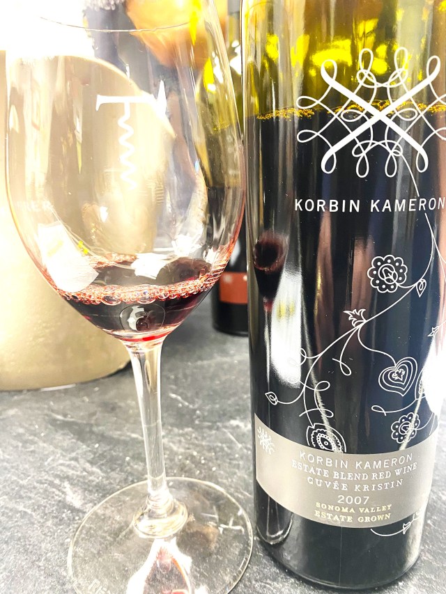 The next three wines at the tasting were named after his sister Kristin, who also works at the winery.  The first wine was Korbin Kameron Cuvee Kristin Estate Blend Red Wine Sonoma Mountain 2006 that was offered from the Moonridge Vineyards Library Reserve. This wine is a Bordeaux-style blended wine of Cabernet Sauvignon, Petit Verdot, Cabernet Franc, Malbec and Merlot.  The wine is aged for eighteen months in French Oak, of which sixty percent is new.  There were eight hundred-seventy-cases produced.  A deep ruby-red wine that offered notes blackberries, black currants, dark chocolate, anise and sous-bois.  On the palate this well-balanced and full-bodied wine displayed tones of dark fruits, well blended with still striking tannins (so they must have been quite big at release) and ending with a long-count finish of rich fruit, terroir and some smoky overtones.