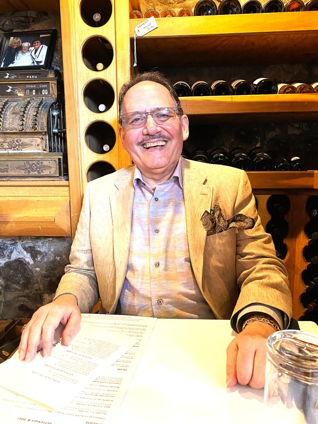 I was touted to try another restaurant in Petoskey, but that will be another time, as they are only open for dinner and we were going to have lunch while we were there. We decided to go and have lunch at Chandler’s, which is below and adjacent to Symons General Store, which opened in 1956, in the oldest brick building in the city. Normally, we have our meals in the wine cellar, which is part of the basement of Symons, but for lunch we either had to eat in a courtyard or in a tavern across the courtyard from Symons, we went into the tavern. We already had plans for a big dinner, so we just wanted to keep our hunger pangs to a minimum. My Bride had the Crab Cakes with lump crab, fresh herbs, micro greens, bruleed lemon slices and roast red pepper remoulade. I had the Beef Tenderloin Tartare with egg yolk, capers, red onion, parsley, arugula, Parmesan crostini, Dijon mustard, lemon infused olive oil and cracked pepper.