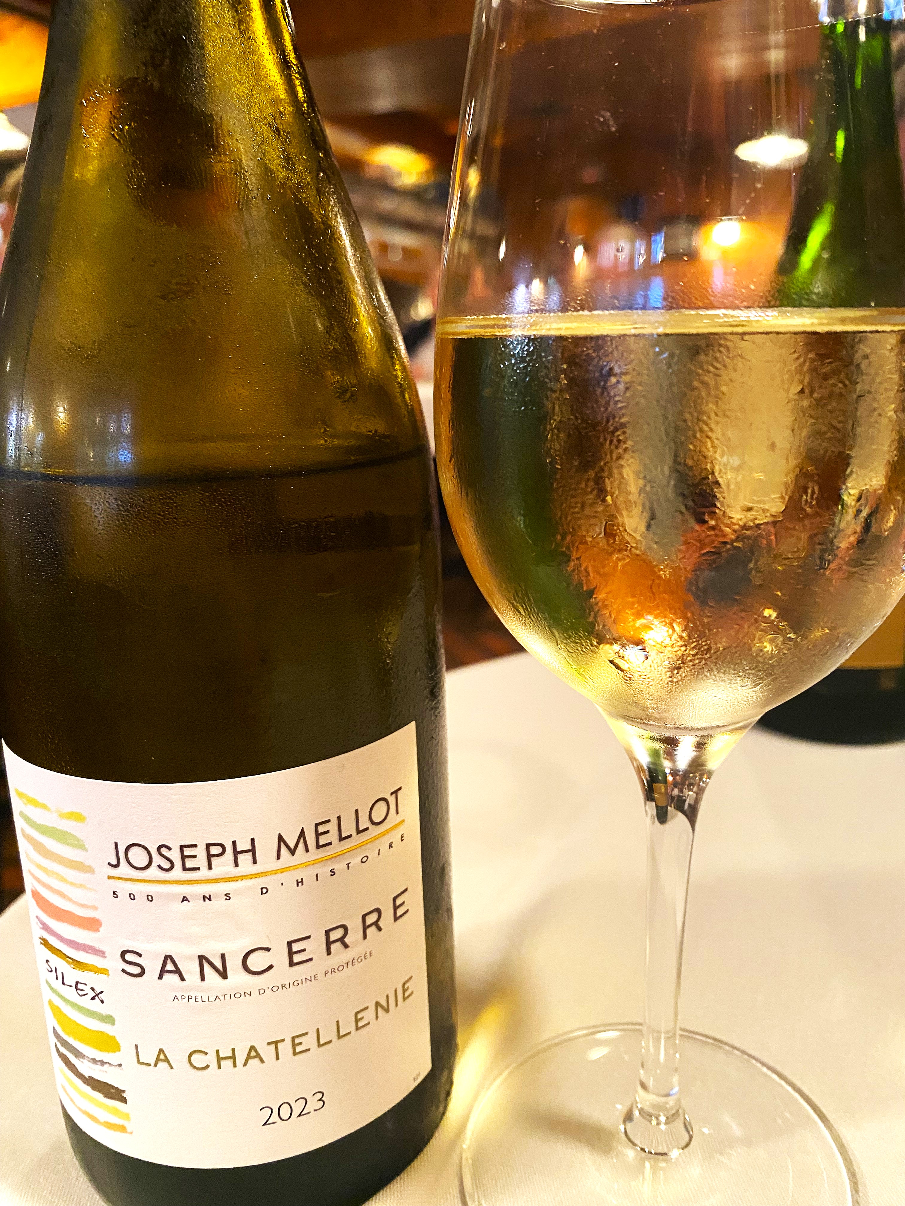 Some of you, may think I am going crazy, but I chose a white wine for the both of us, as I thought it would be refreshing on a hot, sunny August afternoon and the piquancy and zest I figured could hold its own against the Tartare. We had a bottle of Joseph Mellot Sancerre La Chatellenie Loire 2023. While Joseph Mellot estate was established in 1969, Pierre-Etienne Mellot established his Domaine in 1513, and it has been in the family ever since. Sancerre is only fifty miles from Chablis in the Burgundy region, and the soil is similar to the Kimmeridgian soils of that region. The soils of Sancerre are broken down to three types: chalk, limestone-gravel and silex (flint) and it is the silex that gives Sancerre the “gunflint” aroma that is distinctly Sancerre. The wine is pure Sauvignon Blanc and comes from an estate of eighteen hectares, and the average age of the vines is twenty-five years. The fruit is mechanically harvested, and then destemmed, macerated for a short period and then pneumatically pressed. Cold Fermentation in done in temperature-controlled Stainless-Steel tanks for about fifteen days and then the wine is aged on the lees before bottling. The pale golden colored wine offered notes of yellow pears, green apples, lemon citrus, herbs and spices and wet flint and stones. On the palate this medium-bodied wine had bright acidity and displayed tones of pears, peaches, and apples with a mineral vein prevalent throughout the entire taste, culminating with great salinity and a medium to long finish of citrus and minerals
