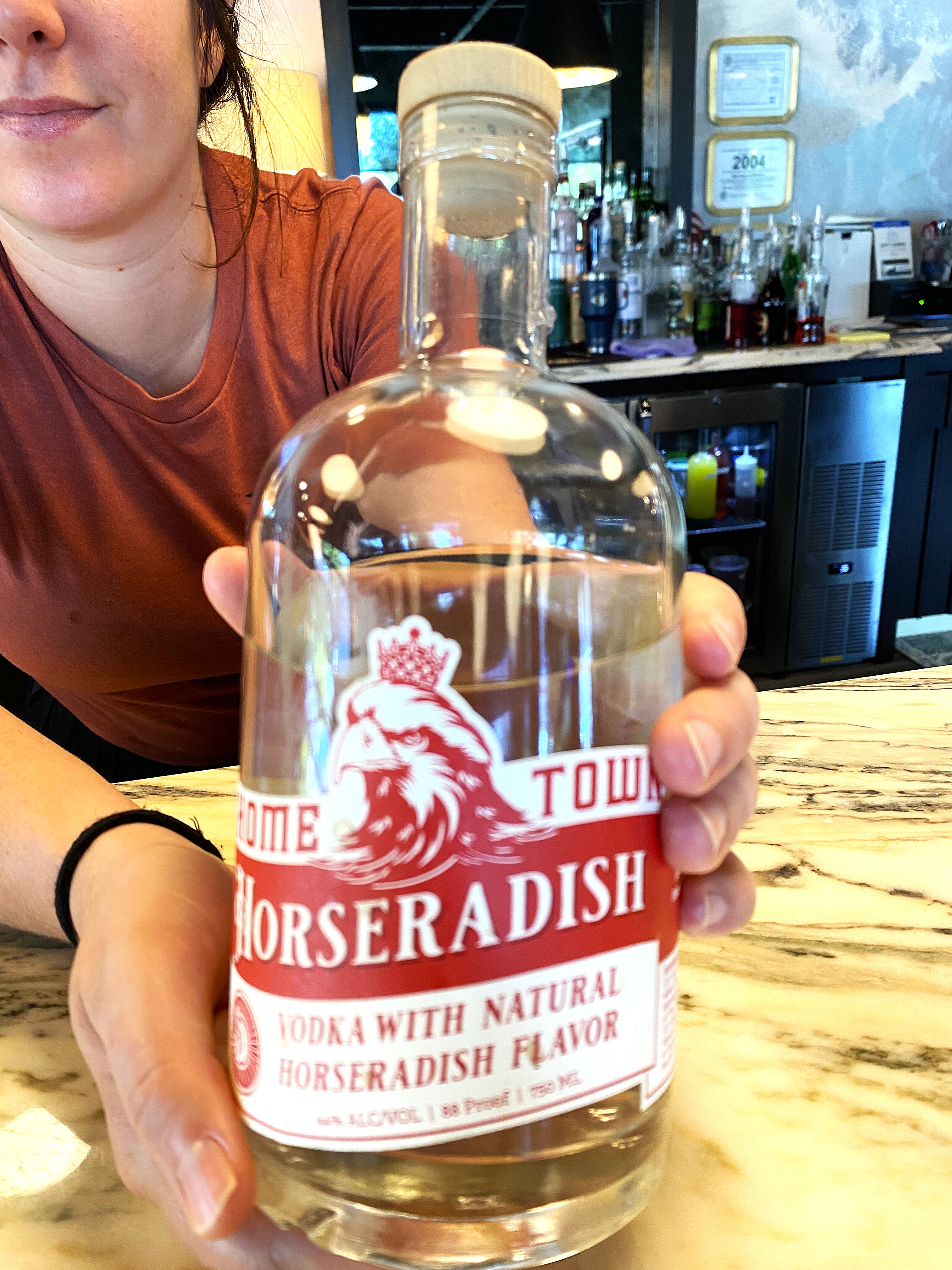 We found Walloon Watershed in the heart of Walloon Lake Village and a very easy walk to the lake, I mean, even I would not build up a sweat walking there. While it was in a brand-new small strip center, the tavern itself evoked the charm of the village. My Bride parted company with me, as she saw a coffee shop and that is one of her beverages of choice, so she left me to my own devices. They had a well curated wine carte, locally produced craft beers and as they proclaimed, “meticulously crafted cocktails.” I was intrigued and I had to walk around a bit, being the curious person that I am. It was a very comfortable shop, with a private room for ten for a small gathering, and they offered small artisanal plates for sharing. I even saw an interesting bottle of Hometown Horseradish Vodka with Natural Horseradish Flavor that was made by Detroit City Distillery from pure Michigan corn vodka. I thought would be ideal for Bloody Mary’s or for our brother-in-law who hails from Canada, especially for his Caesar of Bloody Caesar where Clamato Juice is substituted for Tomato Juice.
