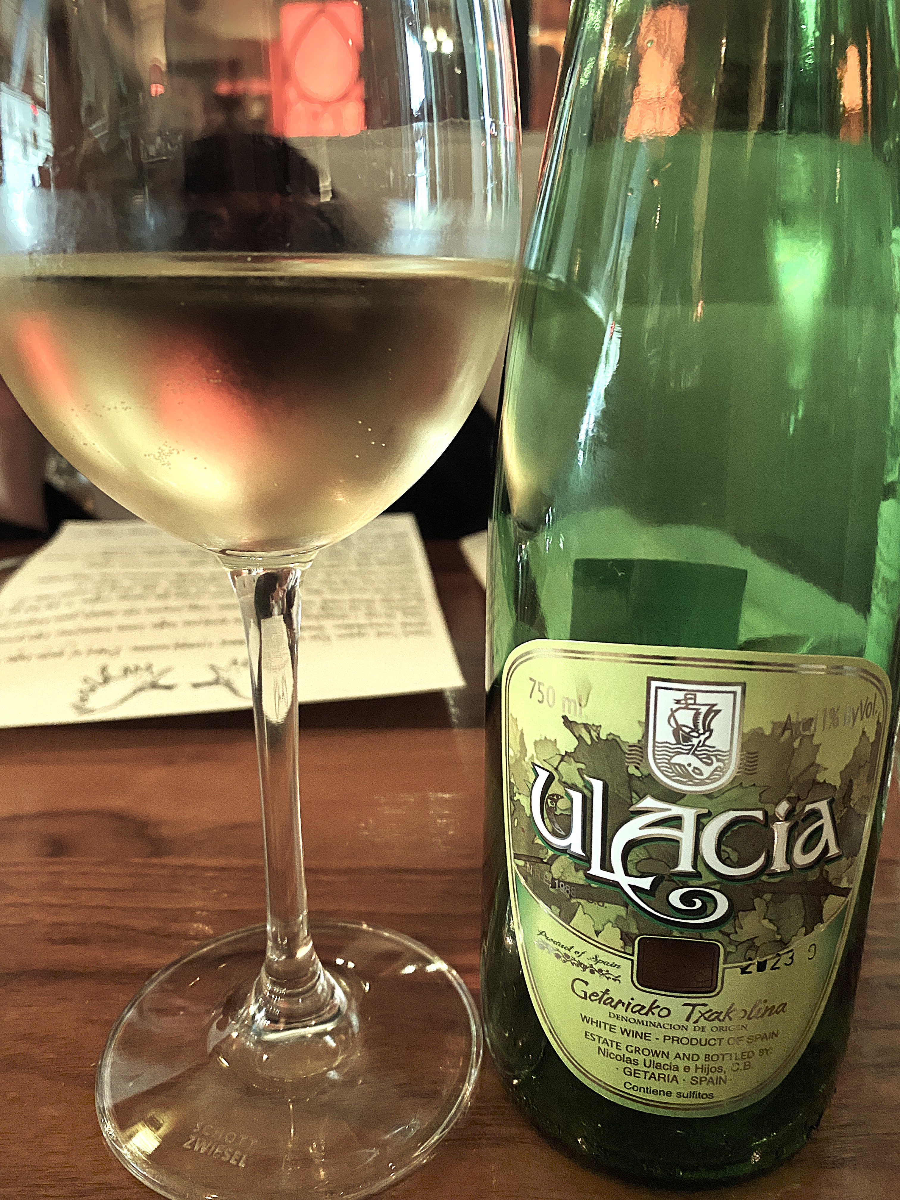 The other couple and my Bride all went with “Tasting Menu” and I just ordered a couple of dishes from the menu, so I will only discuss my two meals. When I asked our server what was going to be on the “Tasting Menu” that evening, she just looked at me and sneered “you will have to wait and be surprised, evidently you have never had a ‘tasting menu’ before” and chastised and belittled me at the table. I was totally humiliated, but I tried not to ruin the evening for everyone else. So, for my first course I had the Michigan Heirloom Tomato Salad, Nuoc Cham, cucumber, crispy tempura, shishito pepper, and herbs, but I asked not to have whipped tofu. I had a glass of Bodega Ulacia Blanco Getariako Txakolina DO, Spain 2023. Bodega Ulacia has been making wines for three generations in Getaria, the birthplace of Getariako Txakolina DO. In 1989 the regulatory Council was created for the Txakolina DO and in 1990 the Getariako Txakolina DO was approved. The word txakoli is Basque for wine village. They built a new winery in 2009. The wine is a blend of ninety-five percent Hondarribi Zuri and five percent Hondarribi Beltza, and the vine are between five and sixty years of age. The fruit is hand harvested, and pneumatic presses are used to extract the must, which is then fermented in Stainless-Steel temperature-controlled tanks. After a couple of months, the wine is bottled. The wine is straw colored with natural effervescent sparkle and offers notes of tropical fruits and citrus, herbs and yeast. On the palate this light-bodied, well-balanced wine displayed tones of fizzy lemon and pineapple, a very crisp wine that ended with a medium-count finish of fruit, yeast and minerals.