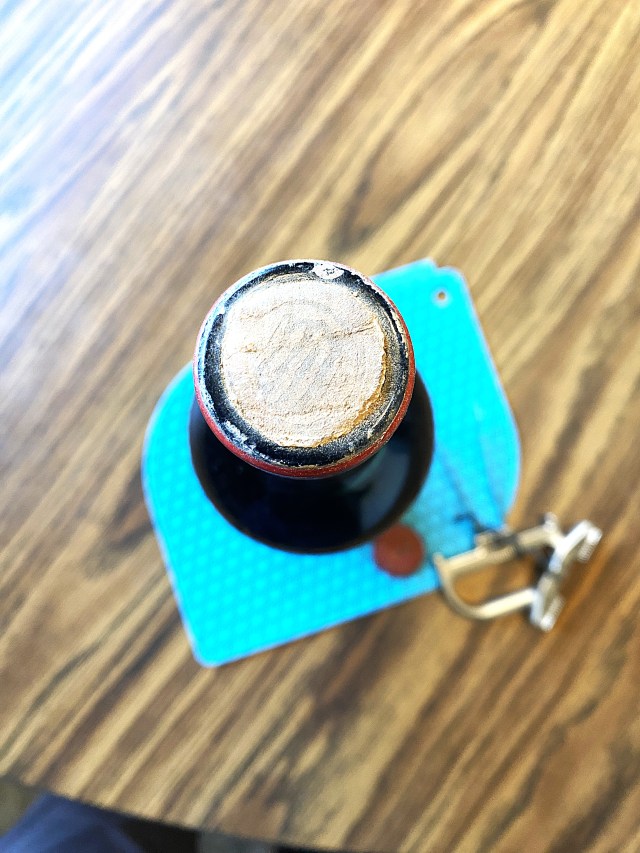 I had gone into the cellar to select my birthday wine and of course she was very curious as to what I would select. I think that she figured that I was going to select another Meritage wine to keep in the theme of the dinner, and in a way I did. I went and washed out one of our decanters, polished a couple of Riedel Crystal glasses and my Durand Corkscrew, which is one of the best wine tools we have ever bought. My Bride looking at the bottle that I had brought up earlier to stand erect, before I decanted it, asked what the price of the bottle would be. I said does it matter, that is why I started the collection when I was in high school, and it was one of my prized wines that I moved from two other basements in my life. When I removed the capsule seal, the cork was still pristine, with no evidence of ullage seepage, and the fill line was just under the capsule edge.