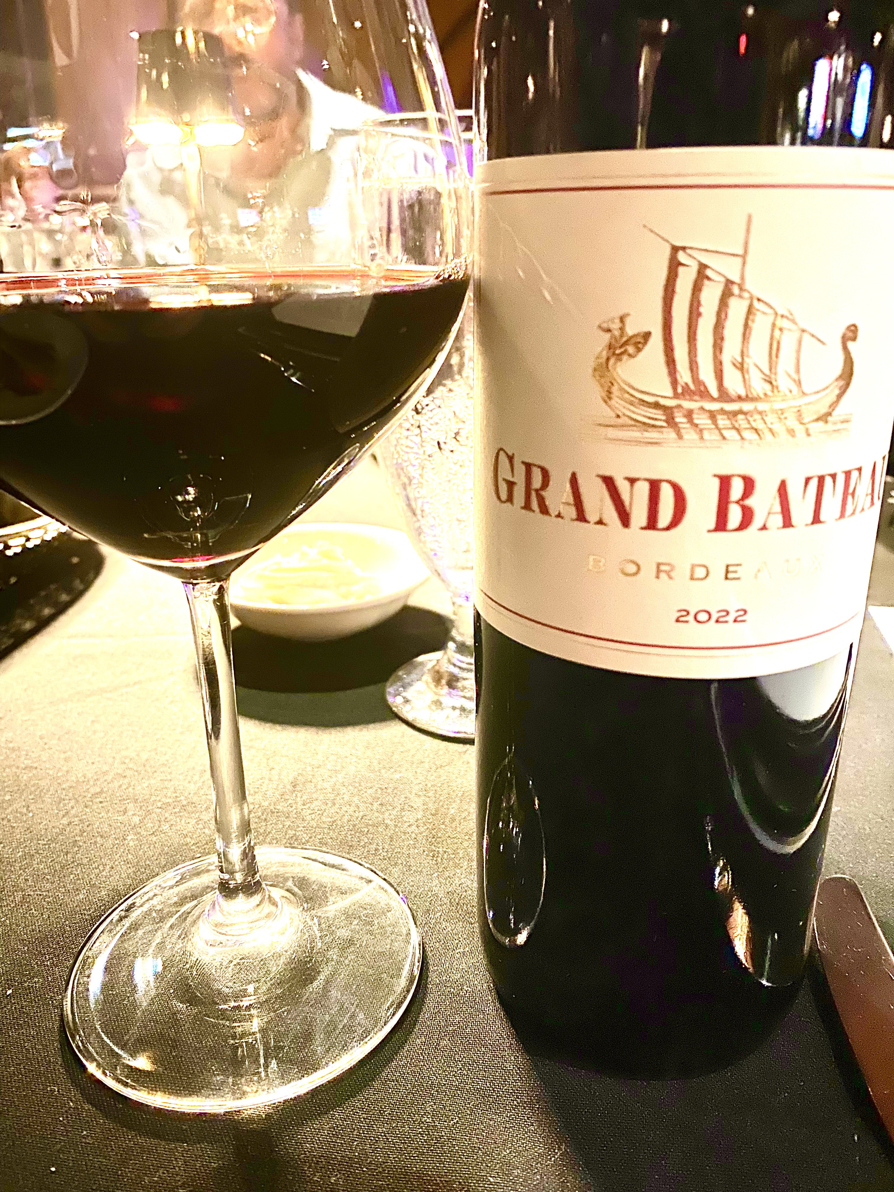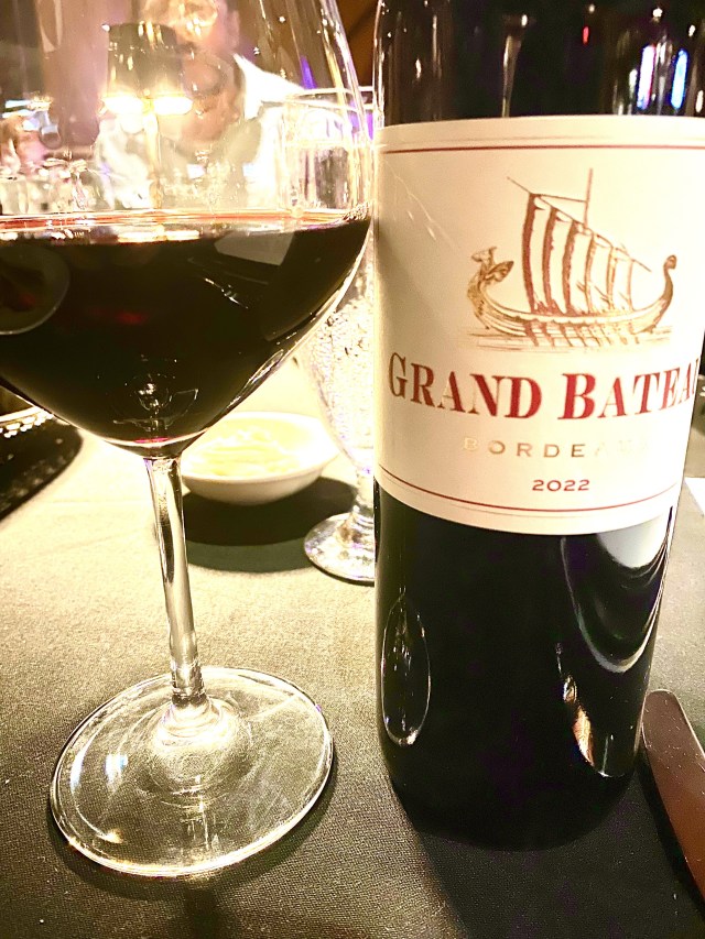 For our entrées, my Bride had Seared Ahi Tuna with Romesco Verde, Braised Collard Greens and Castelvetrano Olive Tapenade. I had the Braised Beef Short Rib with Celery Root Puree, Baby Carrots, Crispy Leeks and a Red Wine Demi-glace. While my Bride continued with the Grand Bateau Bordeaux Blanc 2022, I went with the Grand Bateau Bordeaux Rouge 2022. The wine is a project between two important names in Bordeaux who got together in the Eighties; Maison Barriere who is a respected wine merchant and Chateau Beychevelle which is a Grand Cru Classe in Saint-Julien. Two names that are sourcing capabilities for a wine that can offer both character and value. The wine is a blend of seventy-five percent Merlot and twenty-five percent Cabernet Sauvignon. The wine is a blend of traditional methods and modern techniques, as some of the wine is aged in vats and other is aged in oak barrels, before the blending. The wine is a deep garnet offering notes of plums and cassis, toasted oak, vanilla and baking spices. On the palate this medium-bodied, well-balanced wine displaying tones of rich red and dark fruits, blending with velvety tannins and ending with a medium-count finish of fruit and spices.