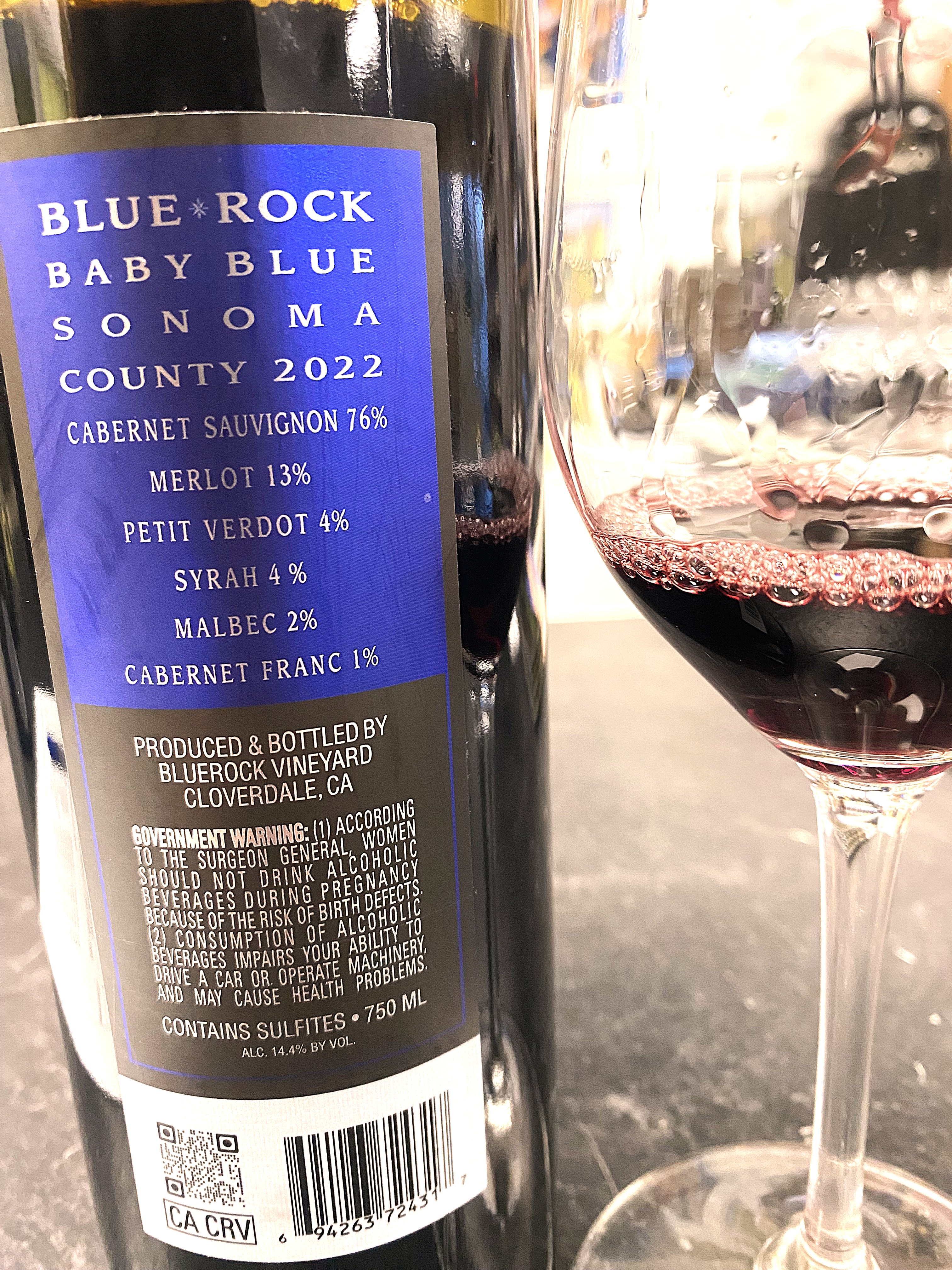 The second red wine was the Blue Rock Winery Baby Blue Red Blend Alexander Valley, Sonoma County 2021. This wine is eighty-five percent Cabernet Sauvignon, seven percent Petit Verdot, three percent Syrah, one percent Cabernet Franc and one percent Malbec. The wine was aged for sixteen months in French Oak, of which fifteen percent was new, with and additional seven months in the bottle. This wine was a deep ruby red colored wine that offered notes of blackberry, currants, and secondary notes of graphite, cedar, peppercorn and vanilla. On the palate this medium-bodied, well-balanced wine displayed tones of black and red fruits, black tea, savory spices and dark chocolate blending with moderate tannins and ending with a medium-count finish of fruit, spices and terroir.