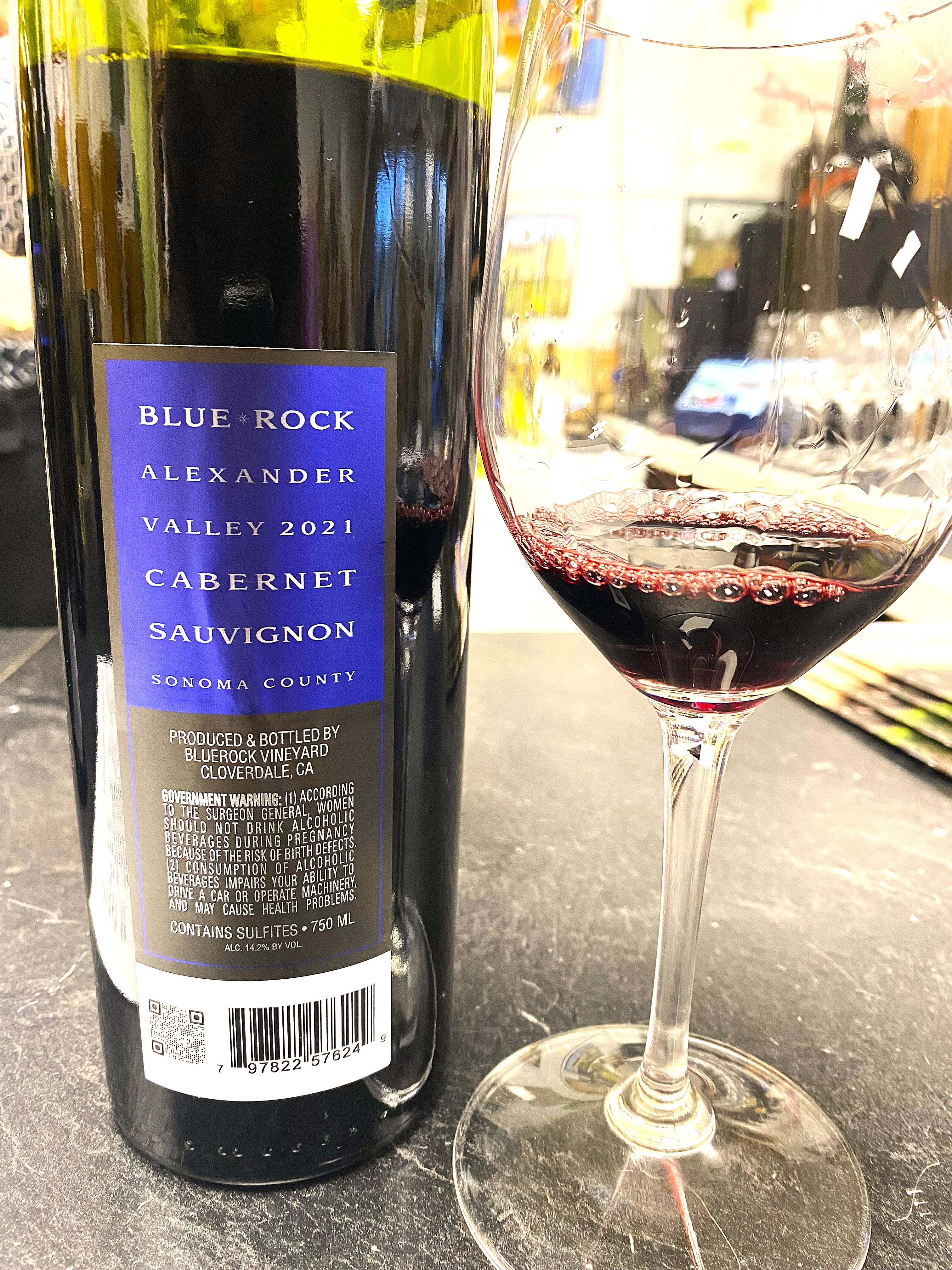 The next wine was Blue Rock Winery Cabernet Sauvignon Vineyard Estate Alexander Valley Sonoma County 2021. This wine was a blend of ninety-four percent Cabernet Sauvignon, five percent Petit Verdot, and one percent Merlot. The wine was fermented and aged for twenty-four months in French Oak, of which twenty-five percent was new, which an additional seven months in the bottle before release. This deep garnet-red wine offered notes of dark and red fruits, especially boysenberry, along with dried herbs and spices and gravel. On the palate this medium-bodied, full-balanced wine displayed tones of black cherry and blueberry, along with mint, graphite and cocoa blending with fine grain tannins and finishing with a medium to long-count finish of fruit, spices and terroir.