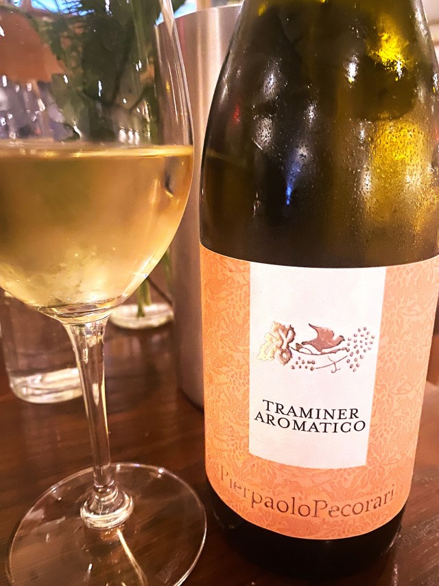 For our main entrée orders my Bride had the Walleye with Wilted Savoy Cabbage, Walley Velouté and Sauce Verte. While the two men had orders of the Wienerschnitzel which was a Breaded Veal Cutlet with Morel Rahmsauce and Pickled Mustard Seeds. It was easy that we were all going to have white wine and we went with Pierpaolo Pecorari Traminer Aromatico Venezia-Guilia IGT 2021. This wine is from the Friuli-Venezia-Giulia, also known as Tre Venezia region in northern Italy. Wine growing in the region dates to the 18th century and since the 1970s there has been focus on traditional winemaking. The Traminer grape is said to derive from Tramin (Termeno), a town in the Alps of Alto-Adige and the grape dates to the 11th century. It is believed to be the German Gewurztraminer of Alsace, but which area was first can’t be determined positively. In the Alpine region it is also known at White Traminer and Savagnin Blanc. This golden-yellow-colored wine offered notes of dried white flowers, rose petals, citrus and nuts. On the palate this light bodied wine with moderate acidity displayed tones of lychee, citrus, herbs and spices coming to a medium-count finish of fruits, spices, nuts, smokiness and minerality.