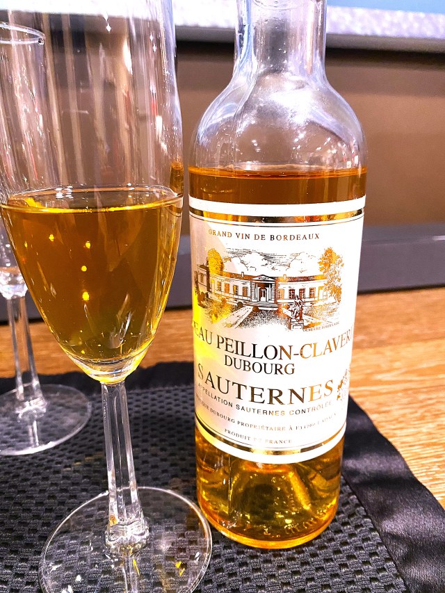 Fear not, while my Bride was searing the Foie Gras, I was getting the right beverage. I found this bottle of Chateau Peillon-Claveries Dubourg Sauternes 2010 and frankly, I don’t remember where or when I secured this bottle, but the color of the wine in the bottle was deep gold and that secured my selection. I could find very little about the estate, even though they are esteemed for having a rich heritage and admired for their craftmanship. They only make one wine and only for approved vintages, otherwise they sell the wine to blenders for secondary market brands. The wine is a blend of hand-picked Semillon, Sauvignon Blanc and Muscadelle; which are left on the vines until they reach that perfect ripeness and affected by the “Noble Rot” (Botrytis Cinerea). This natural phenomenon concentrates the sugars and the flavors of the grapes and is what makes Sauternes wines international favorites. This deep golden colored wine offered notes of honey, acacia, honeysuckle and beeswax. On the palate the medium-bodied, well-balanced viscous wine displayed tones of honeyed apricots and peaches, creamy sweetness with a burst of natural acidity and ending with a long-count finish of honey, orange crème and toasted almonds. As a side note, the teenagers, while they didn’t respond well to the Foie Gras, they did enjoy the wine.