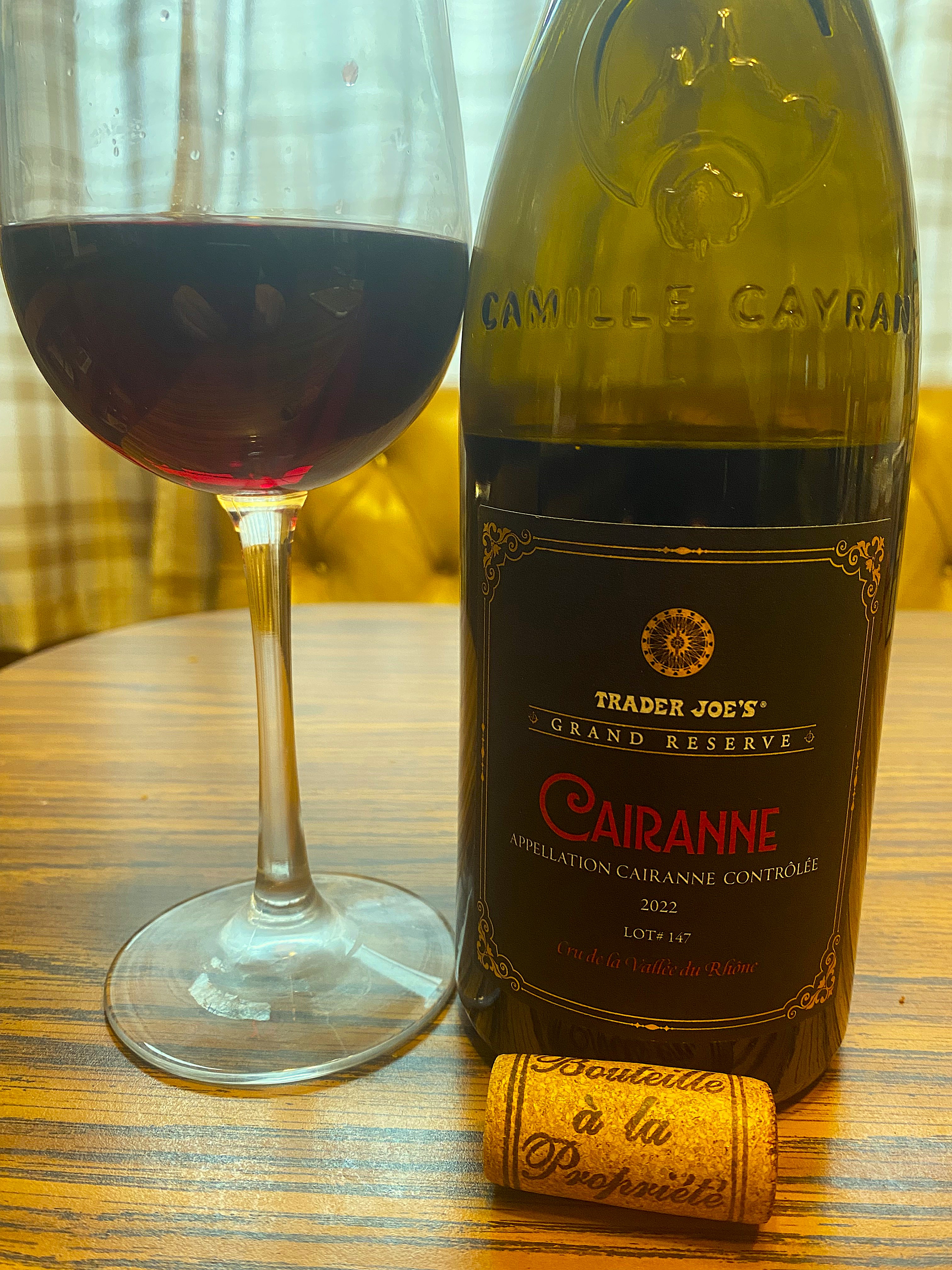 So, onto the bottle of wine that was sent to me, which was Trader Joe’s Grand Reserve Cairanne Lot #147 2022. The first Trader Joe’s store was opened in 1967 by founder Joe Coulombe in Pasadena, California. In 1979, it was purchased by the co-founder of Aldi, Theo Albrecht. Trader Joe’s is the exclusive retailer of Charles Shaw (aka “Two Buck Chuck”). It has been said that Trader Joe’s was built first on wine, and then on food. The company omits names of wineries off their labels, and many wines are from Bronco Wine, the company behind Charles Shaw. Cairanne is an appellation that originally was classified as Cotes du Rhone Villages Cairanne but was elevated to Cru status in 2016. The soil of Cairanne is basically of limestone and alluvial soils, as well as areas of red, iron-rich earth over sandstone bedrocks. The wine is eighty percent Grenache and twenty percent Mourvèdre. This deep dark-red wine offered notes of black fruit, spices and a soupcon of orange peel. On the palate, this medium-bodied, well-balanced wine displayed tones of blackberry, cassis and currants along with some cinnamon and pepper blended with fine tannins and ending with a medium-count silky finish of fruit, spices and a touch of chocolate.
