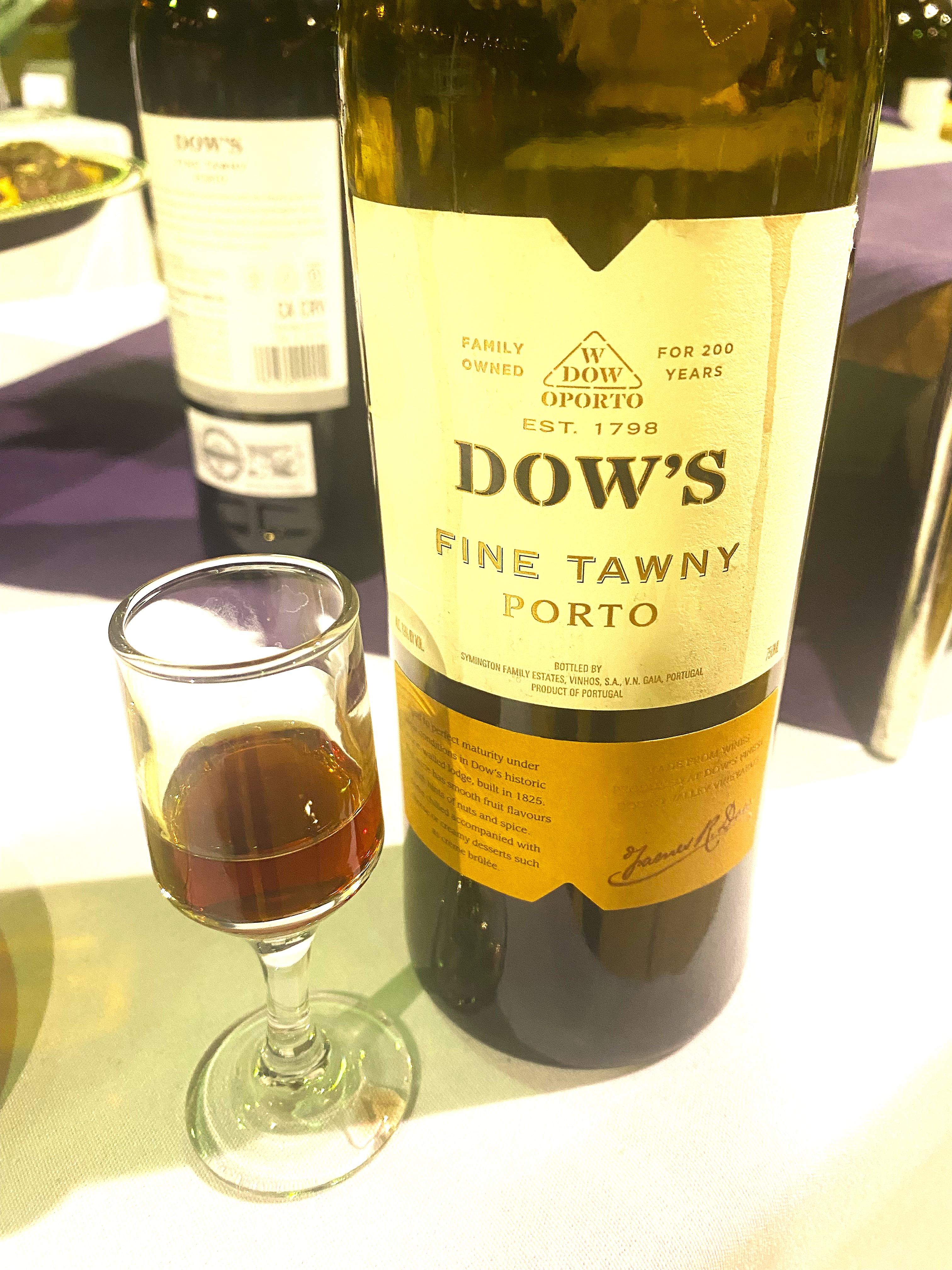 There was a dessert table set up afterwards with mini-cannoli, assorted macaroons and other bite size morsels. There were also small glasses filled with Dow’s Fine Tawny Porto NV, and forgive me, but I could in my mind’s eye envision Barry Fitzgerald as a Monseigneur approving the selection. The wines used to be called Port, but since the advent of other wineries years back, especially in America offering tepid imitations called Port, the great Port houses of Oporto renamed their wines Porto, and the Porto wines are legendary fortified wines. Most of the grand Port houses have a British name, which shows how much the British valued these fortified wines. Dow’s is over two hundred years old and has changed hands and is now part of the Symington Family Estates, but the quality and tradition has been maintained. Dow’s was the first house to receive Royal Assent and was allowed to maintain their own armed shipments of wine to Great Britain during the Napoleonic Wars. Dow’s also owns four famed vineyards in the Upper Douro Valley, and these are considered great vineyards and allow them to make all the different versions of Port wines, including when deemed proper, a vintage year; as not all years are declared a vintage year. The grapes used to make Port wines are a mix and perhaps not even the winemakers can agree on what the actual percentage of each grape is used. The most common varietals are Touriga Nacional, Touriga Franca, Tinta Barroca, Tinta Roriz (more famous and recognizable as Tempranillo), Tinto Cao and one can also find Souzao, Tinta Amarela and Mourisco Tinto. Dow’s Fine Tawny Porto is a three-year-old blend aged in small casks, which produces smoother and lighter wine and doesn’t require additional aging. This reddish-amber colored wine offered notes of caramel, apricots and raisins followed by hazelnuts and roasted chestnuts. On the palate this medium-bodied, well-balanced viscous wine displayed tones of ripe fruit, dried fruit and ended with a good medium-count finish of raisins and roasted nuts.