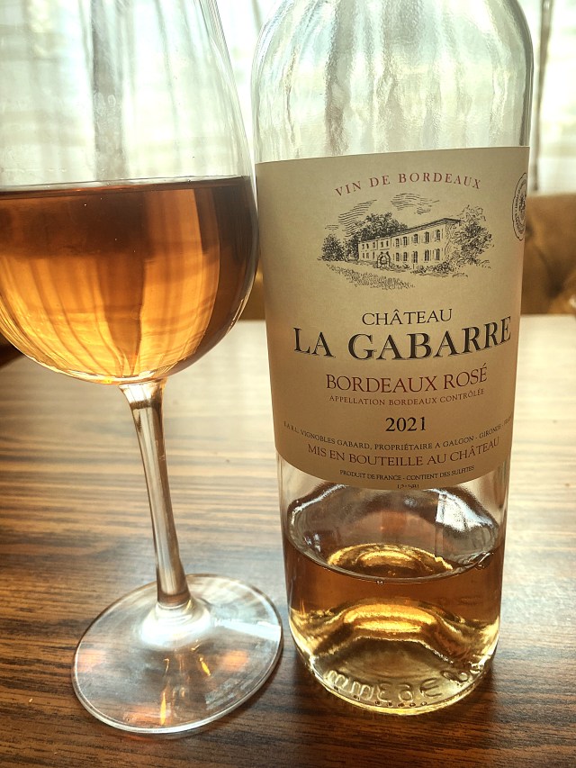 Thankfully I keep the refrigerator in the garage filled with assorted wines to handle whatever I may be having for dinner. The other night I opened Chateau La Gabarre Bordeaux Rosé 2021 and is in the commune of Galgon on the Right Bank, northwest of Lalande-de-Pomerol. The estate has been in the Gabard family since the 1800’s and the present stewards are Stephane and Paola Gabard. They use sustainable farming practices, and the soil is gravel, clay and sand and the average age of the vines is between fifteen and thirty-five years. Besides this wine they also produce a Bordeaux Blanc, and a Bordeaux Supereiur; and all three wine types are done both as Chateau La Gabarre and their label “La Gabarre.” The wine is a blend of forty-five percent Merlot, thirty percent Cabernet Franc and twenty-five percent Cabernet Sauvignon. They use a direct press method and then age the wine for nine months in Stainless Steel to keep the fruit and crispness and they produced eight-hundred-fifty cases of this wine. This copper-colored wine offered notes of raspberries and strawberries. On the palate this medium-bodied, well-balanced wine displayed tones of fresh red fruit with some bright acidity and ends with medium-count finish of fruit and spices.