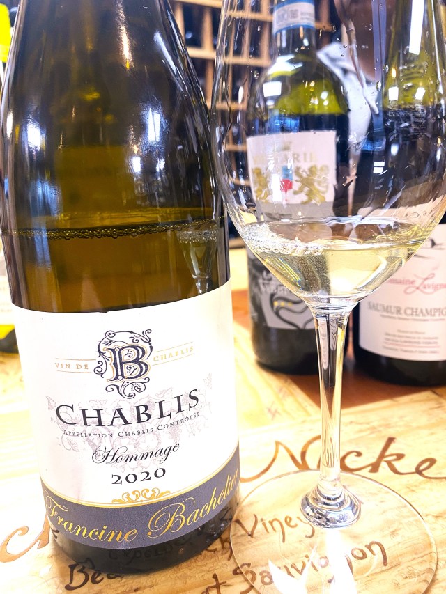 They then asked me if I had time to taste a couple of wines. It was pure music to my ears, after seeming to be in solitaire for the last couple of weeks. I had a glass of Francine Bachelier “Hommage” Chablis 2020. Francine Bachelier and her husband, Olivier Savary, own a small, highly regarded estate in Maligny, which lies at the northern edge of the slope of the Grand Cru Chablis vineyards. Olivier markets his wines as Domaine Savary, while Francine produces limited-run selections in the cellar for her own label. While they own property in two Premier Crus, their specialty is producing quality Chablis Village wines. She also produces a very limited special bottling “Hommage” dedicated to her father Raymond Bachelier who runs the family Domaine in Villey-en-Auxois. The grapes are sourced from fifty-year-old vines on hillside vineyards of clay and limestone in Villy. The soil also has an abundance of ancient, fossilized oyster shells, which create a mineral-driven wine, and the wine is an un-oaked Chablis, which reflects the terroir. This wine comes from 1.6 hectares of densely planted Chardonnay and produces less than six hundred cases. Initial Fermentation, as well as Malolactic Fermentation is done in Stainless-Steel tanks. This soft golden colored wine offered notes of pears and yellow apples, lemons and limes, white florals and spiced honey. On the palate this medium-to-full-bodied, well-balanced wine displayed tones of yellow orchard fruit, with traces of pineapple blending with crisp acidity and ending with a medium-to-long-count finish of fruit, citrus and distinctive minerality.