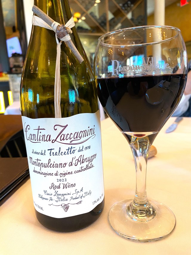 I was feeling rather nostalgic, not for DaVinci, but for the Museum and the Village, so we went for a classic pie and an antipasto, and they now have a location near our house, in a former restaurant where the waiters would sing opera, between servings. We had a bottle of Azienda Agricola Ciccio “Cantina” Zaccagnini dal tralcetto Montepulciano d’Abruzzo 2022. The “Tralcetto” line refers to the small vine twig that is affixed to the bottle with raffia and has been their trademark. Azienda Agricola Ciccio Zaccagnini is one of the leading producers in the Abruzzo region of Italy, with around seven-hundred-forty acres of vineyards. The bottles are always adorned with a small remnant from a vine and a great marketing image. The winery was established in 1978 and has steadily grown, and they now produce over three million bottles of wine, and seventy percent of the production is now divided among forty-five countries. This wine is grown on medium-textured clay soil. After manual harvesting, destemming and crushing the wine undergoes submerged-cap maceration, and then temperature-controlled fermentation for fifteen days, then aged in Stainless Steel on its lees. This deep ruby wine offered restrained notes of red cherries and raspberries, along with pepper and cloves. On the palate this medium-bodied, well-balanced wine displayed tones of red fruit, spices and soft tannins, ending with a short-count finish of fruit and spices; perfect for a meat-lover’s pizza.