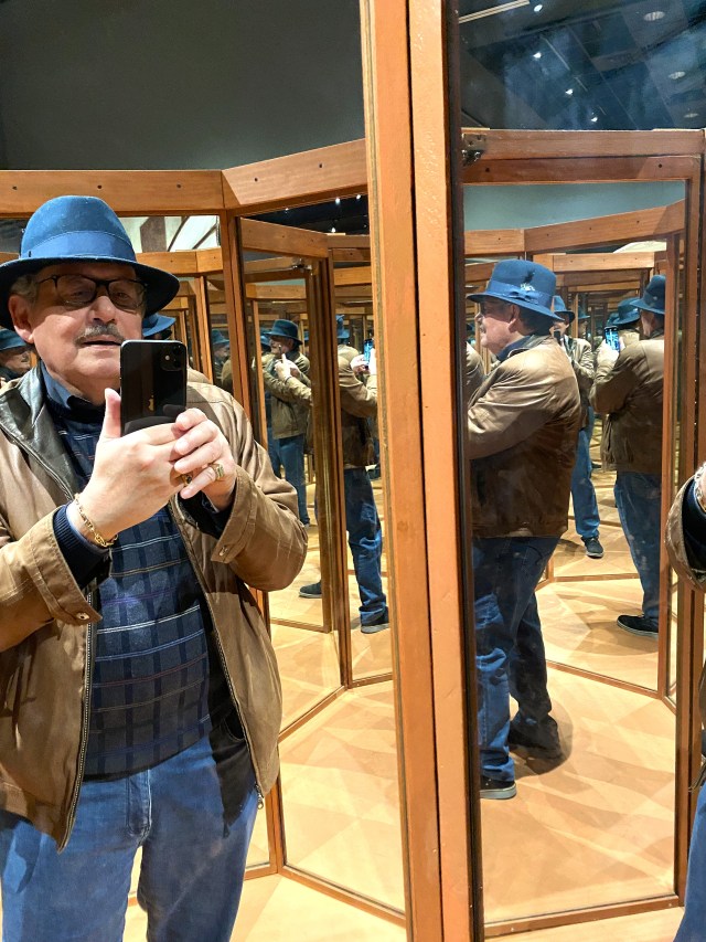 There were also in-depth studies on concepts such as the golden ratio, anatomy and proportion with enlarged sketches and annotations. One of the well-studied and explained was his “Vitruvian Man.” I have to admit, that both of us were as bad as the young students who were there from school field trips, as we waited until the students were done with some of the interactive displays. He had created machines to make man work smarter, instead of harder, with actual displays of assorted rope pulley demonstrations; things that we take for granted today but were totally novel and wonderous at the time. It was here that I had to invoke the inner Michael O’Hara, but there was no Rita Hayworth as I dared to venture into a small-scale version of a mirror room. It also reminded me of the “House of Mirrors” room at a traveling carnival that would come to my old neighborhood in Detroit, when I was a kid. I remember that I solved the mystery by looking at the floor and not the mirrors, and I discovered which way to go, because there was no mirror installed from the floor up to the ceiling. All in all, a wonderful exhibit, and the type of exhibits that are now featured, and there were no traveling exhibits when I was a kid riding my bicycle to see either the Henry Ford Museum or Greenfield Village on a Saturday.