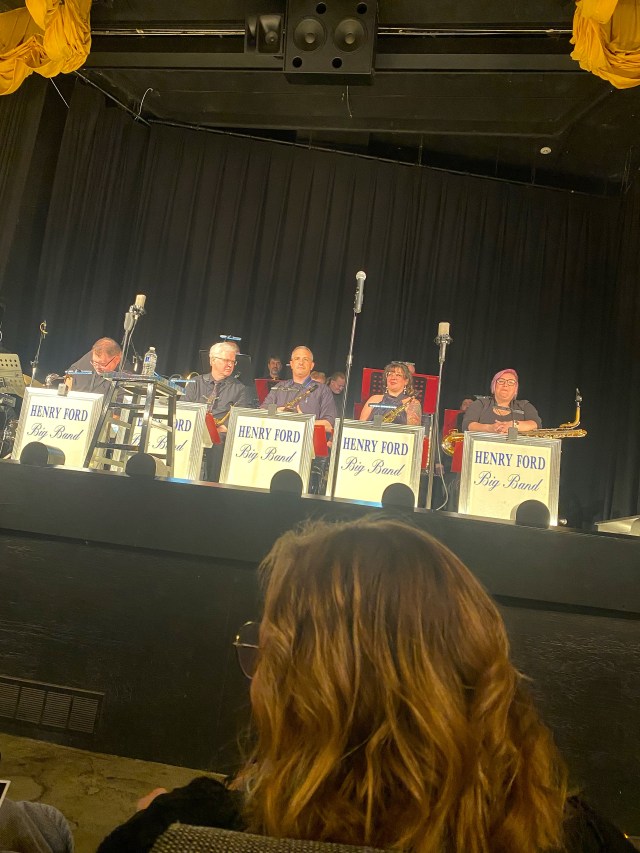 We finally made our way to the Farmington Civic Theater with an Art Moderne style by C. Howard Crane, that same man that designed the Fox Theatre in Detroit. The theater was built in 1940 and went from father to son who later sold the theater to the city in 1998., though in 1989, the balcony was converted into a second theater. The city updated the seats, the sound system and replaced the film projectors with digital projectors and the support technology. The Henry Ford Big Band with eighteen musicians were set up on the stage to wail away, first with pure music and then they were joined with a local chanteuse Olivia Van Goor. Of course, we go to see The Wine Raconteur Jr. who is a saxophonist and acted as the Concert Producer as well. The evening began with Mercer and Mancini’s Days of Wine and Roses and finished with Mancini and Mercer’s Moon River.